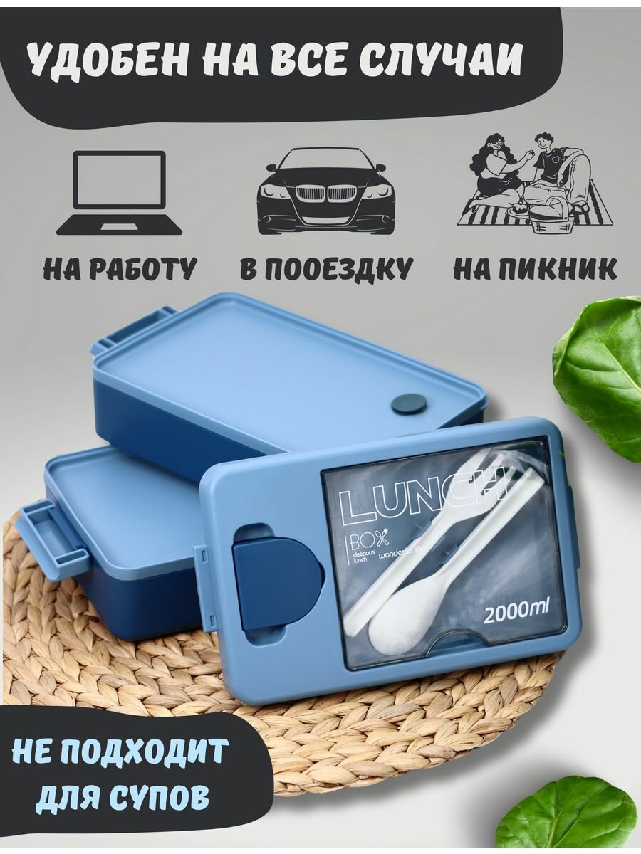 Ланч бокс "Food time" для еды с отделениями и приборами двухъярусный, 2000 мл