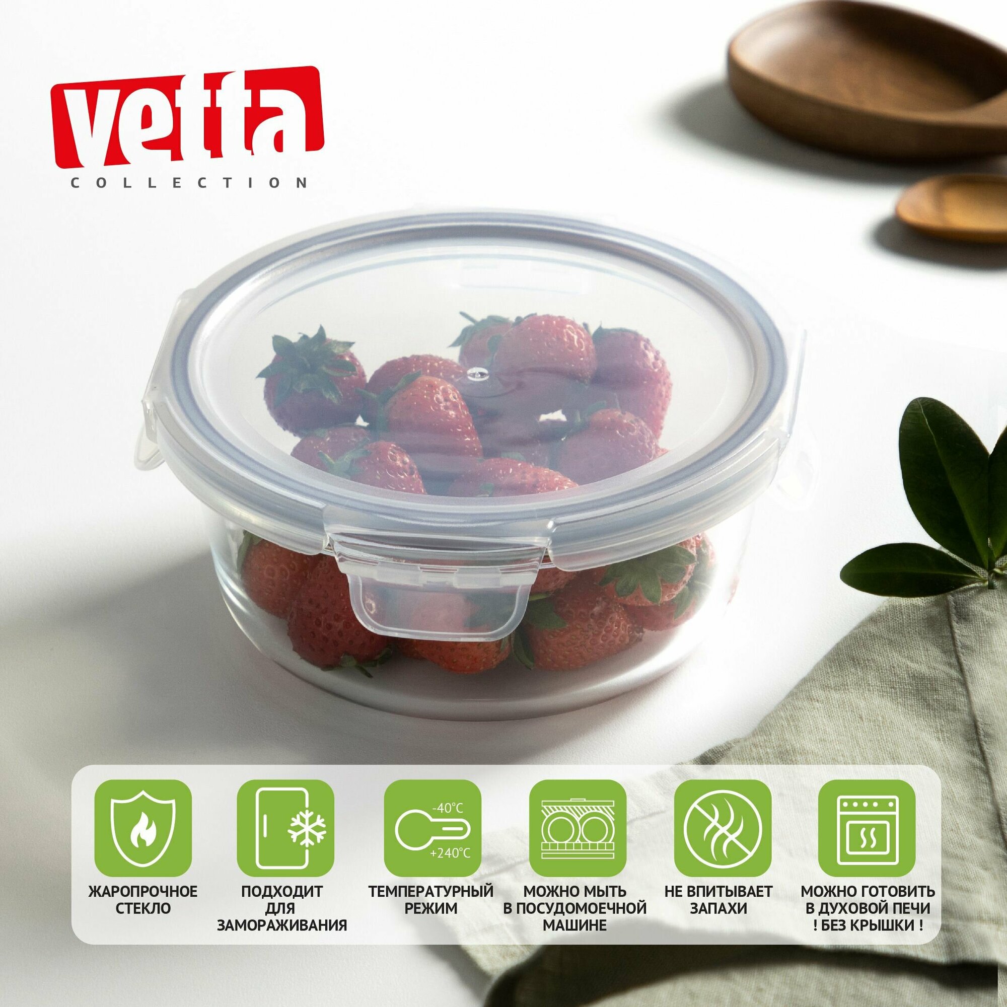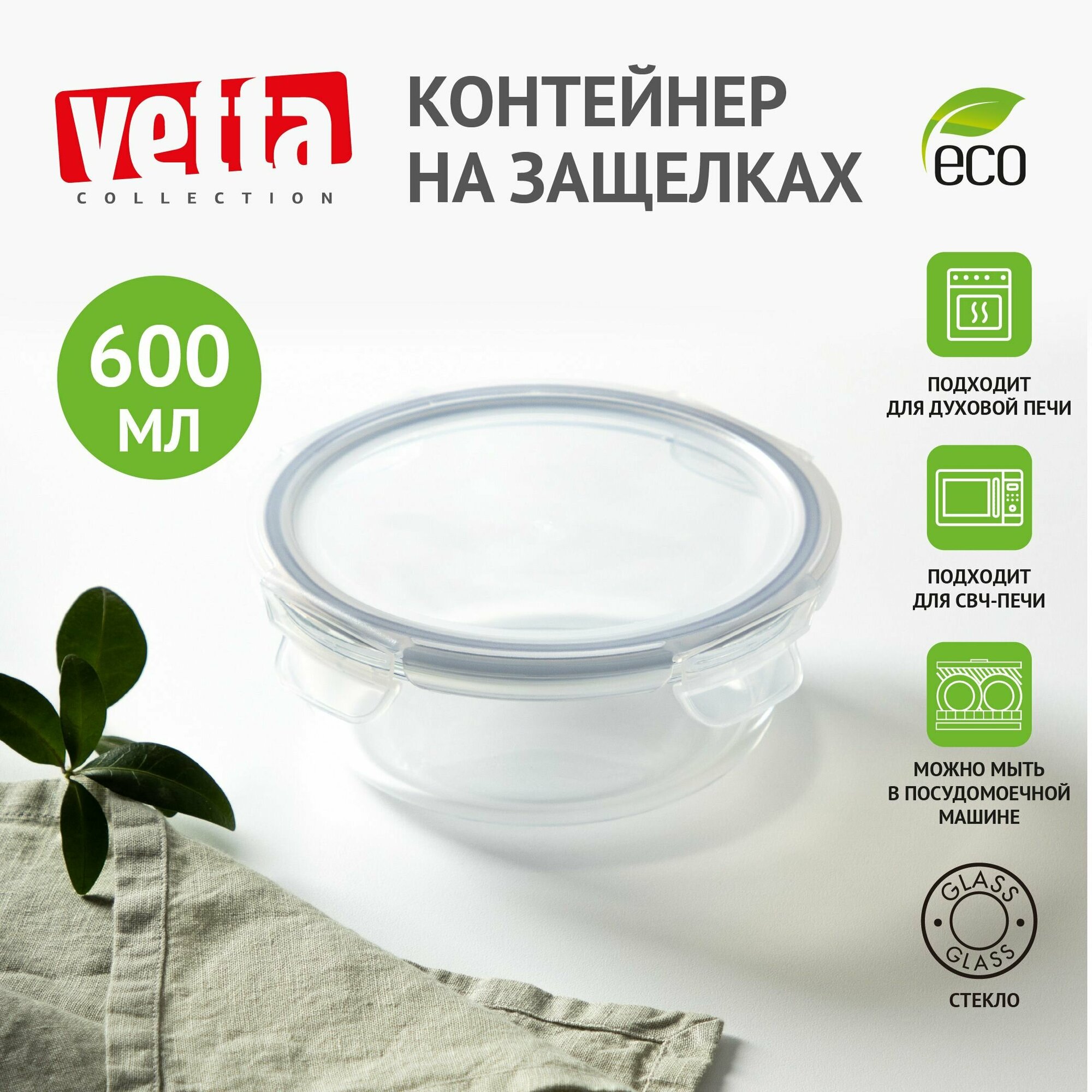 Купить VETTA Контейнер для продуктов на защелках 600мл круглый, жаропрочное стекло