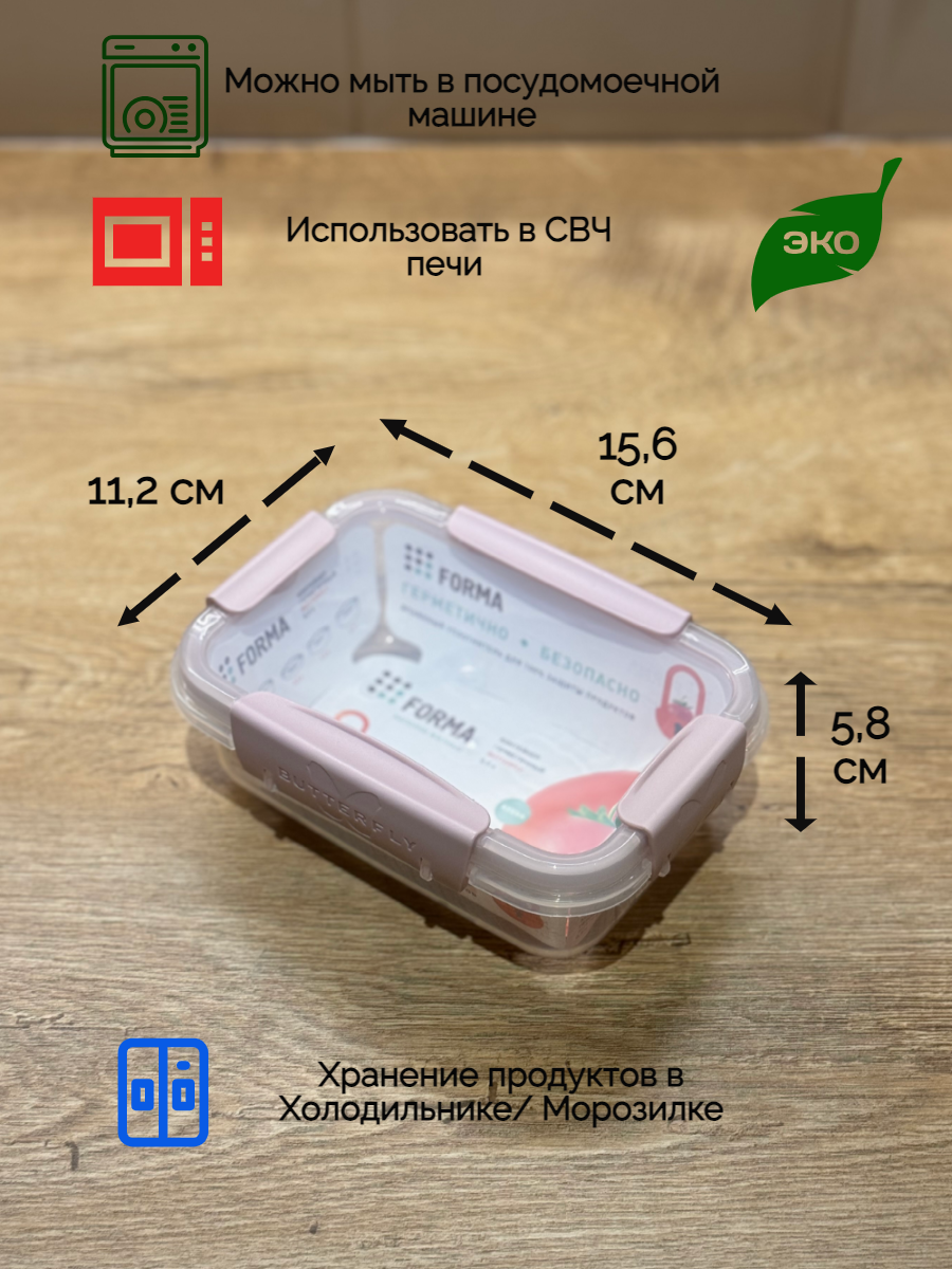 Емкость для продуктов прямоугольная 0,8 л (ягодный)