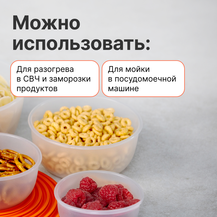 | Особенности | использование для заморозки / можно использовать в свч / можно мыть в посудомоечной машине / с крышкой |