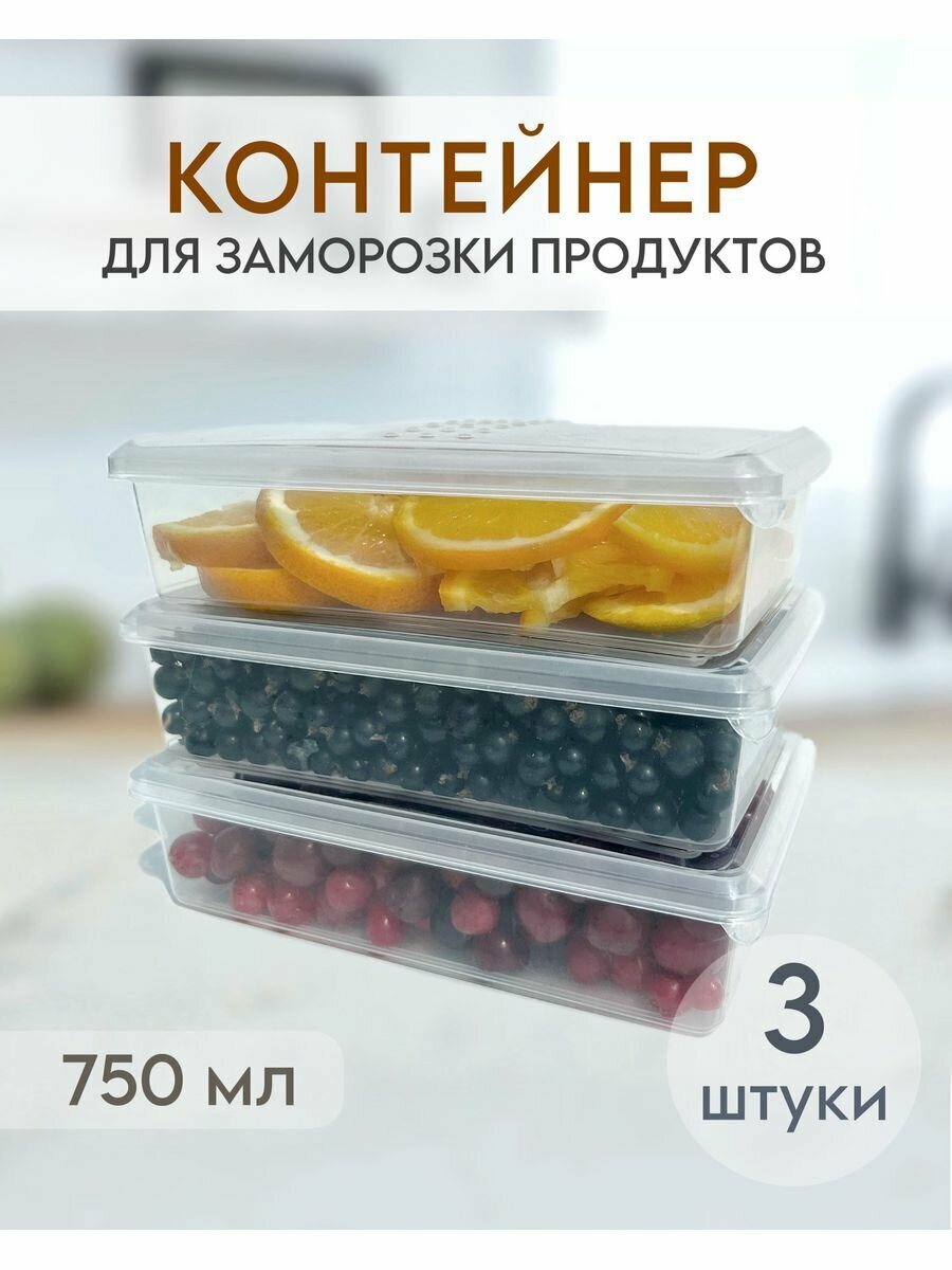 Контейнер для заморозки продуктов 750 мл, 3 шт