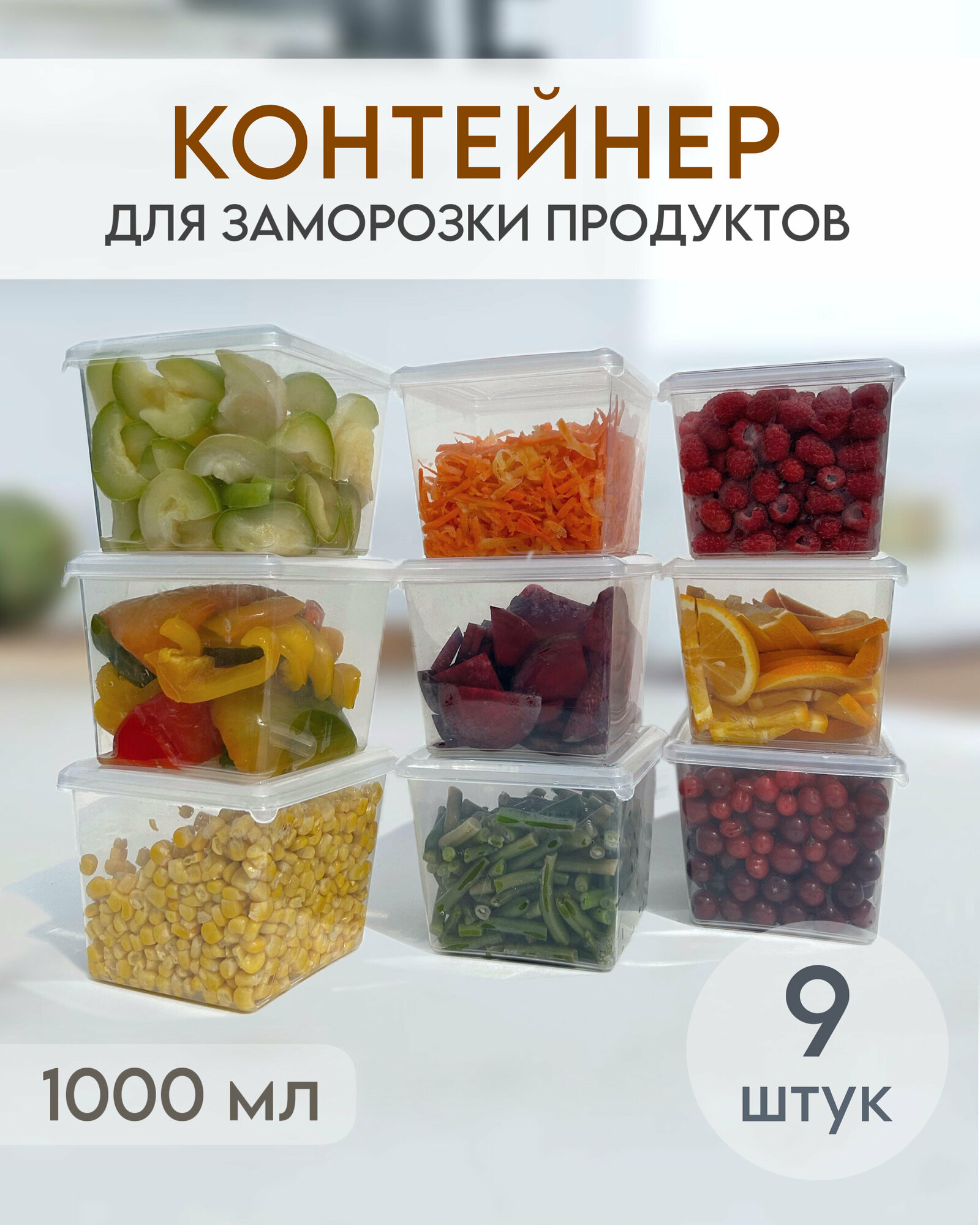 Купить Комплект емкостей контейнеров для заморозки и хранения продуктов, объем 1000 мл, 9 шт.