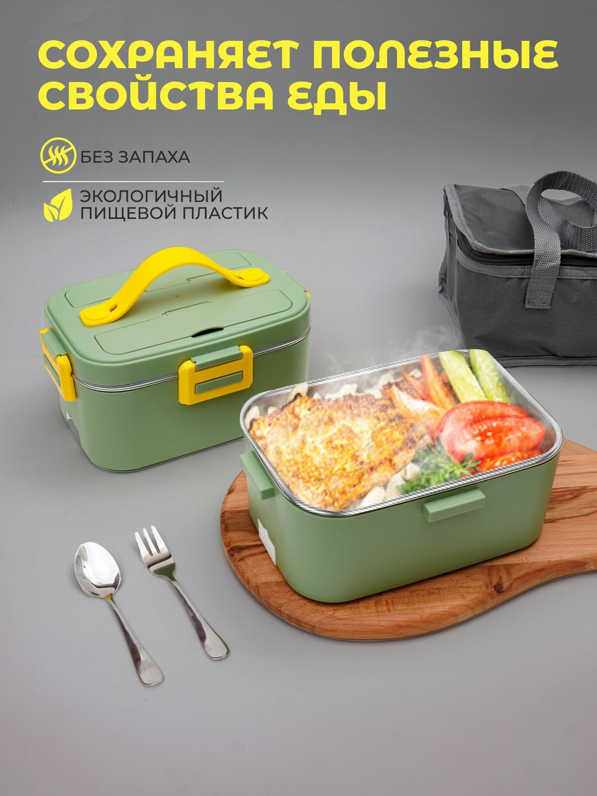 Ланч бокс с подогревом с термосумкой и приборами 1.8 л. Контейнер для еды из нержавеющей стали с зарядкой в автомобильный прикуриватель интересное: