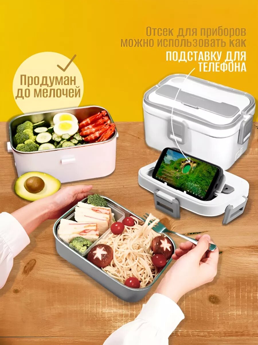 Контейнер для еды - ланч-бокс с подогревом и отделениями интересное: