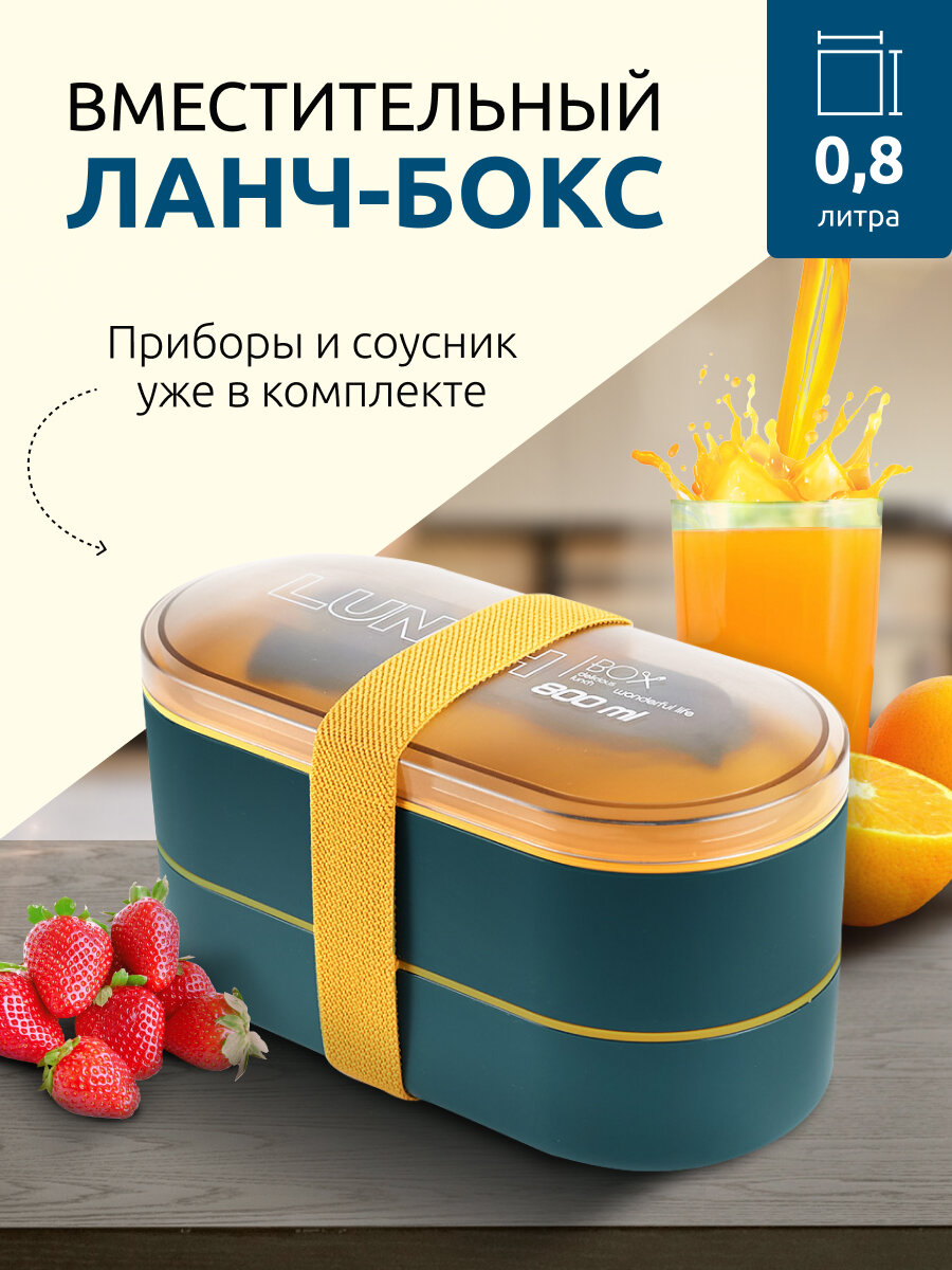 | Комплектация | Ланч-бокс 2-х ярусный, ложка, вилка |