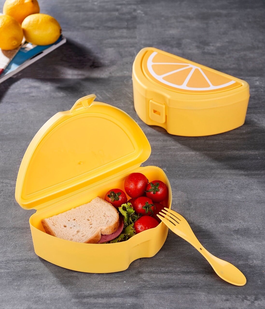 Купить Контейнер пищевой с крышкой, ланч-бокс FACKELMANN школа Лимон, 750 мл, с прибором вилка и ложка, ланч-бокс для еды, контейнер для завтрака