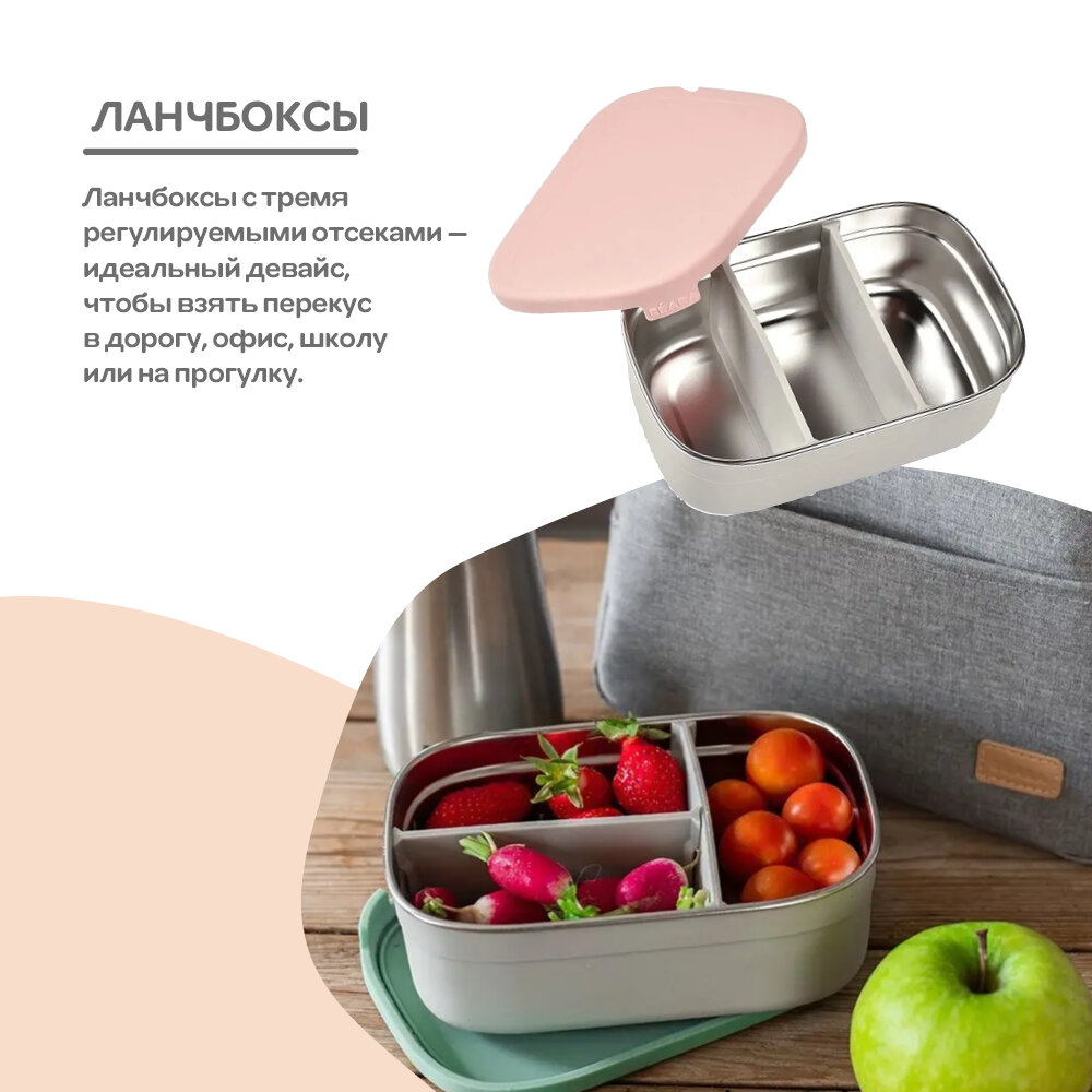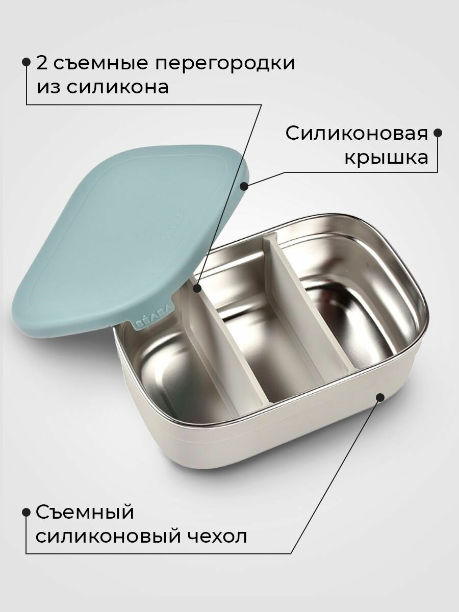 Ланч бокс для еды BEABA 750 мл. из нержавеющей стали и силикона, термоконтейнер для еды в школу, ланчбокс детский интересное: