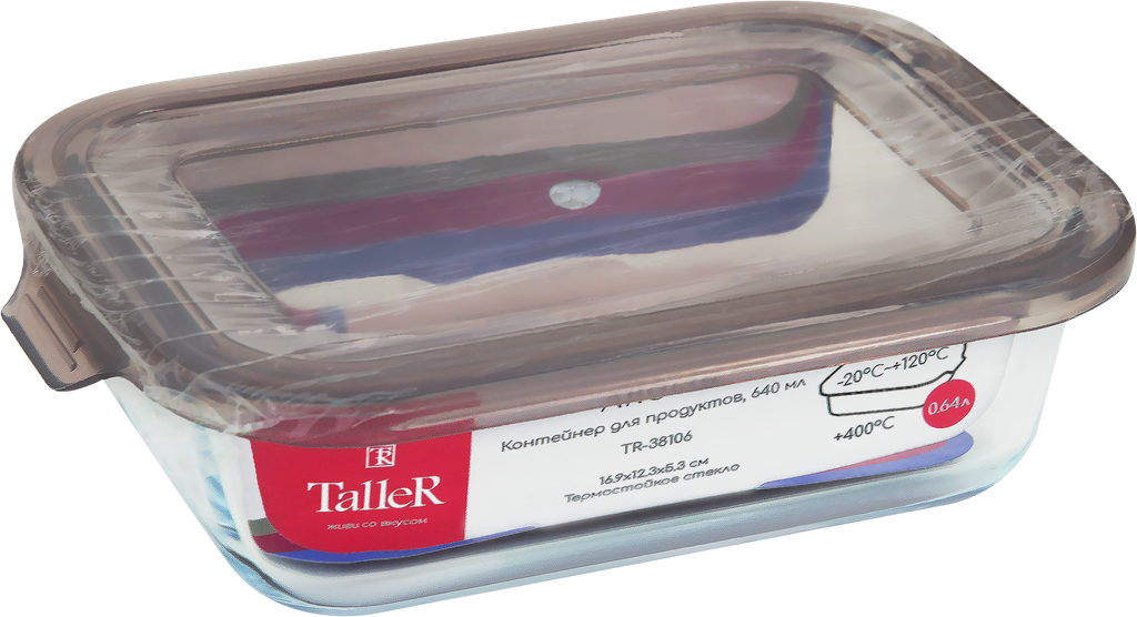 Контейнер жаропрочный TALLER Argos 16.9х12.3х5.3см/640мл, боросиликатное стекло, пластик (38106)