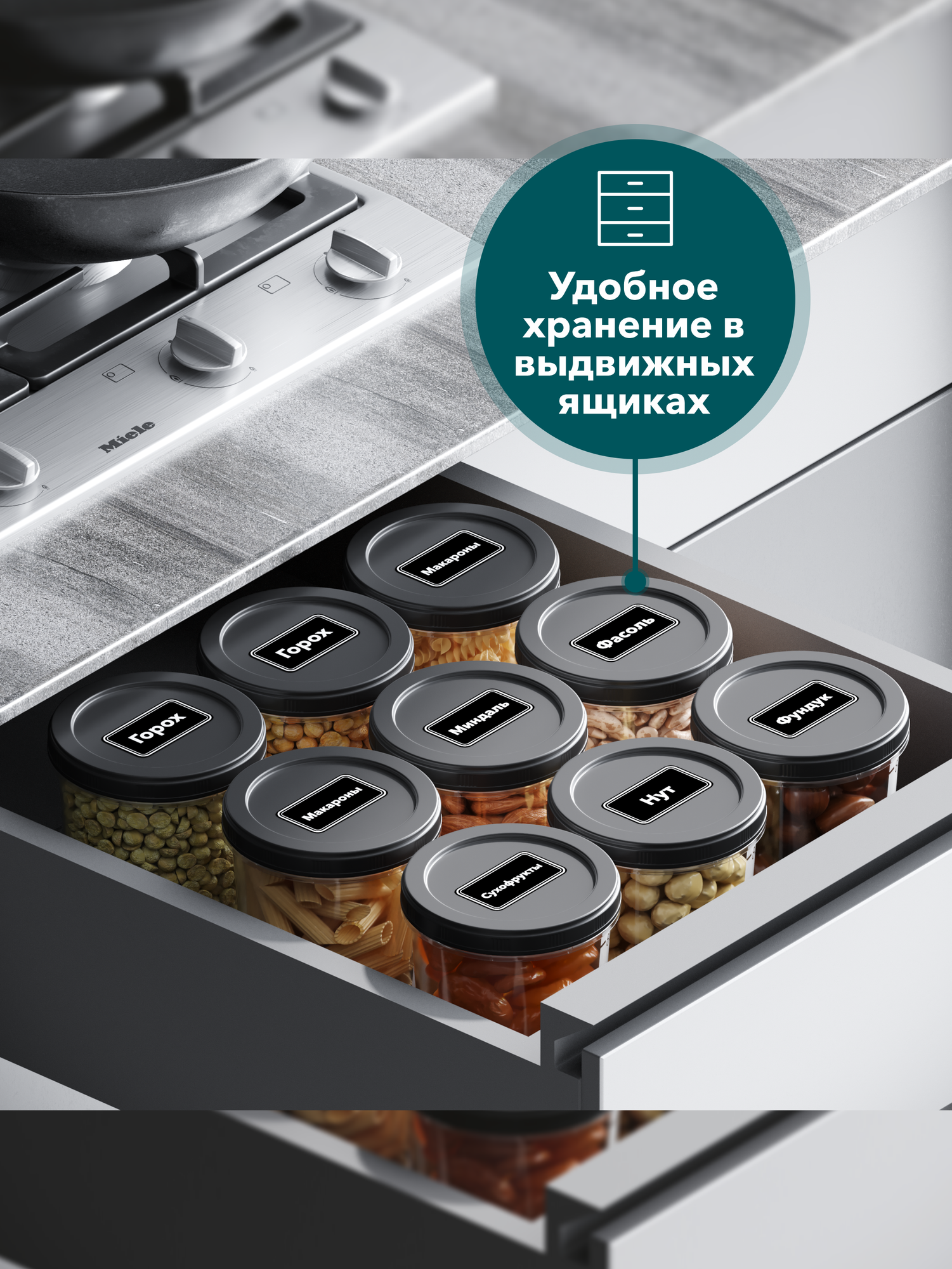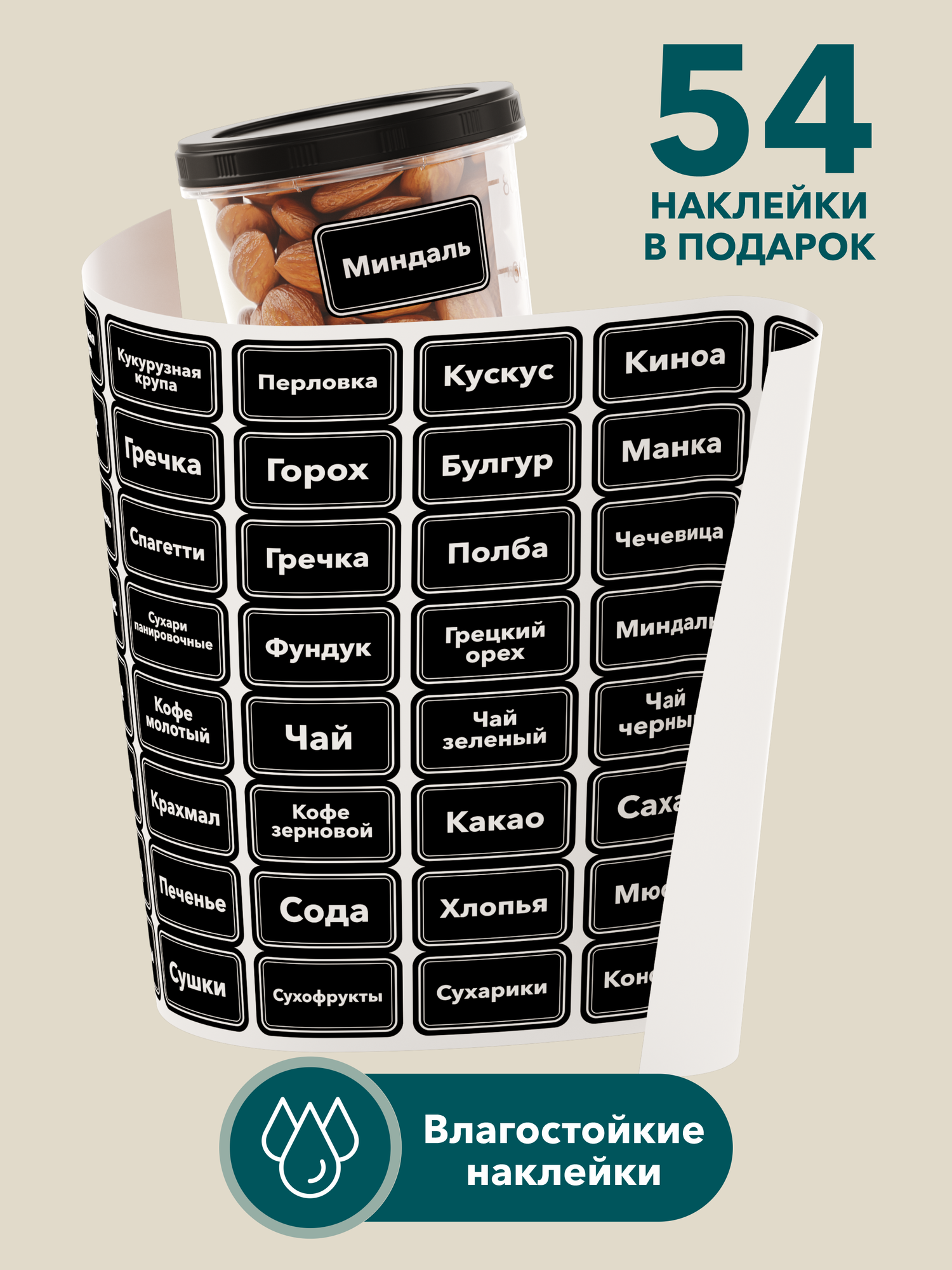 | Комплектация | Банки для сыпучих продуктов 12 шт, наклейки 54 шт |