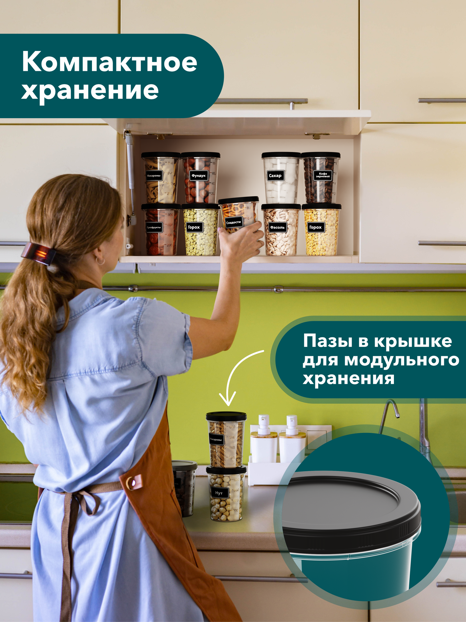 Банки для сыпучих продуктов LockSar 12 шт контейнер для хранения круп с винтовыми крышками 1,0 л - 12 шт