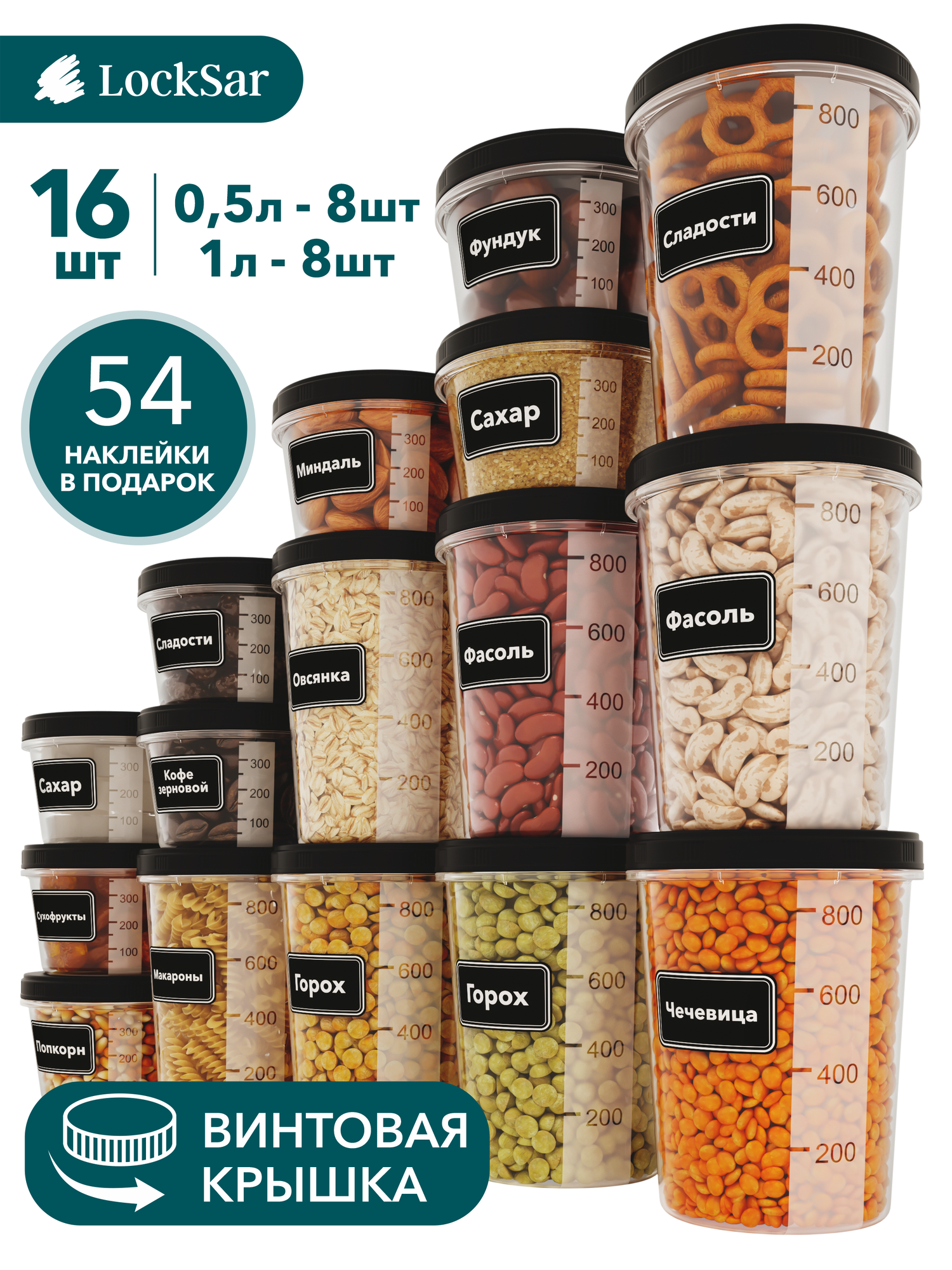 Банки для сыпучих продуктов LockSar 16 шт контейнер для хранения круп с винтовыми крышками 0,5л-8шт, 1,0 л - 8 шт интересное: