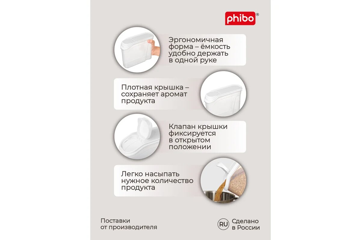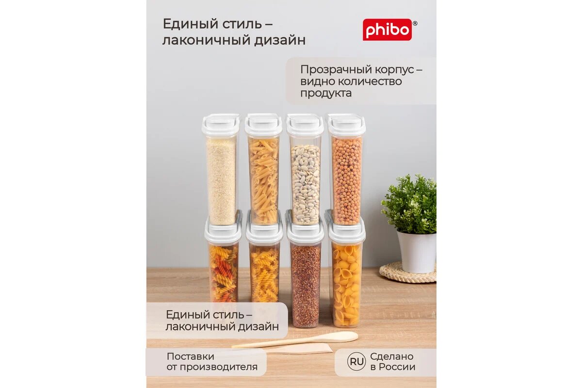 Phibo комплект ёмкостей для сыпучих продуктов 8 штук по 2,0л (бежевый флэк) 43428260722
