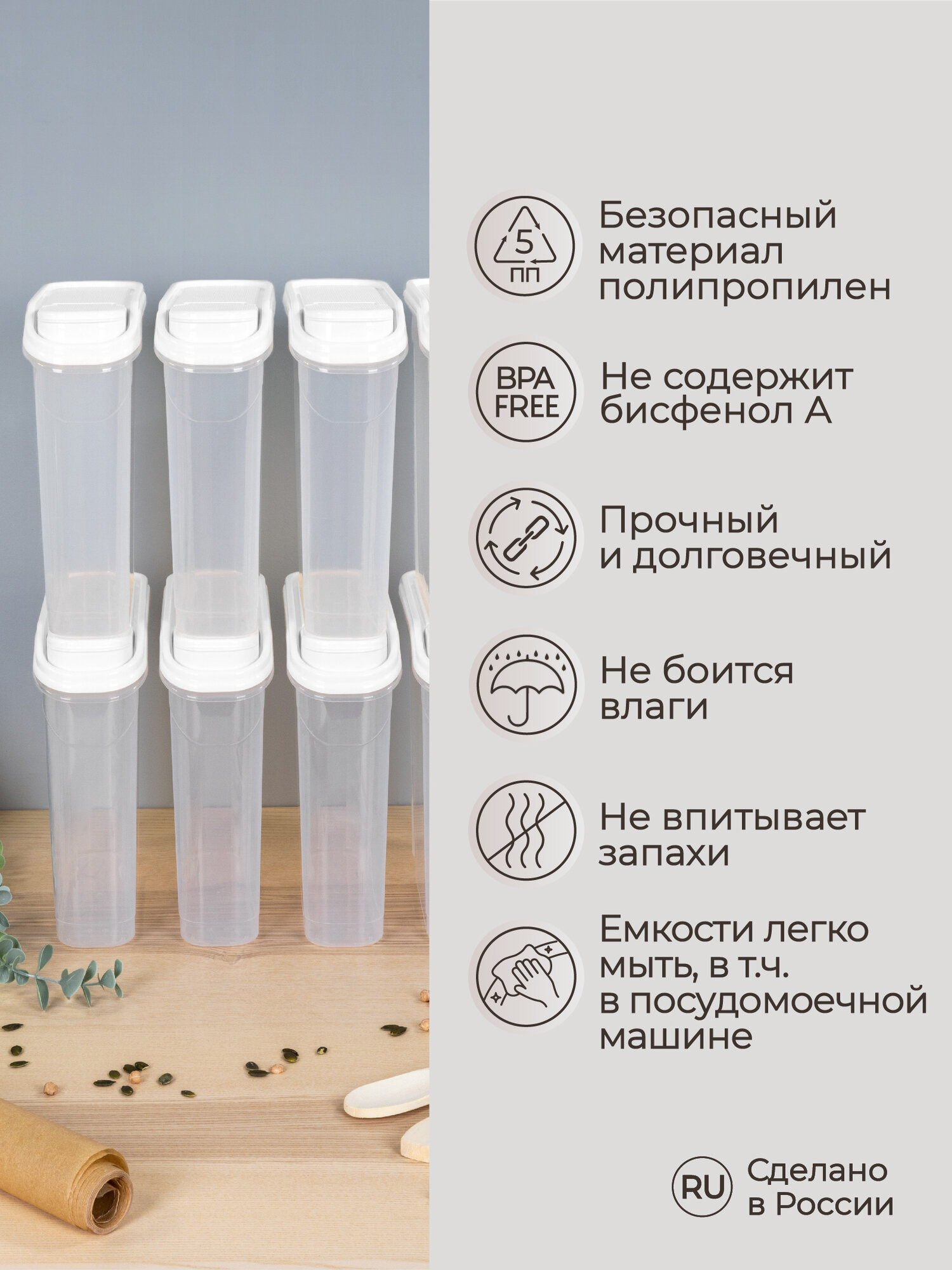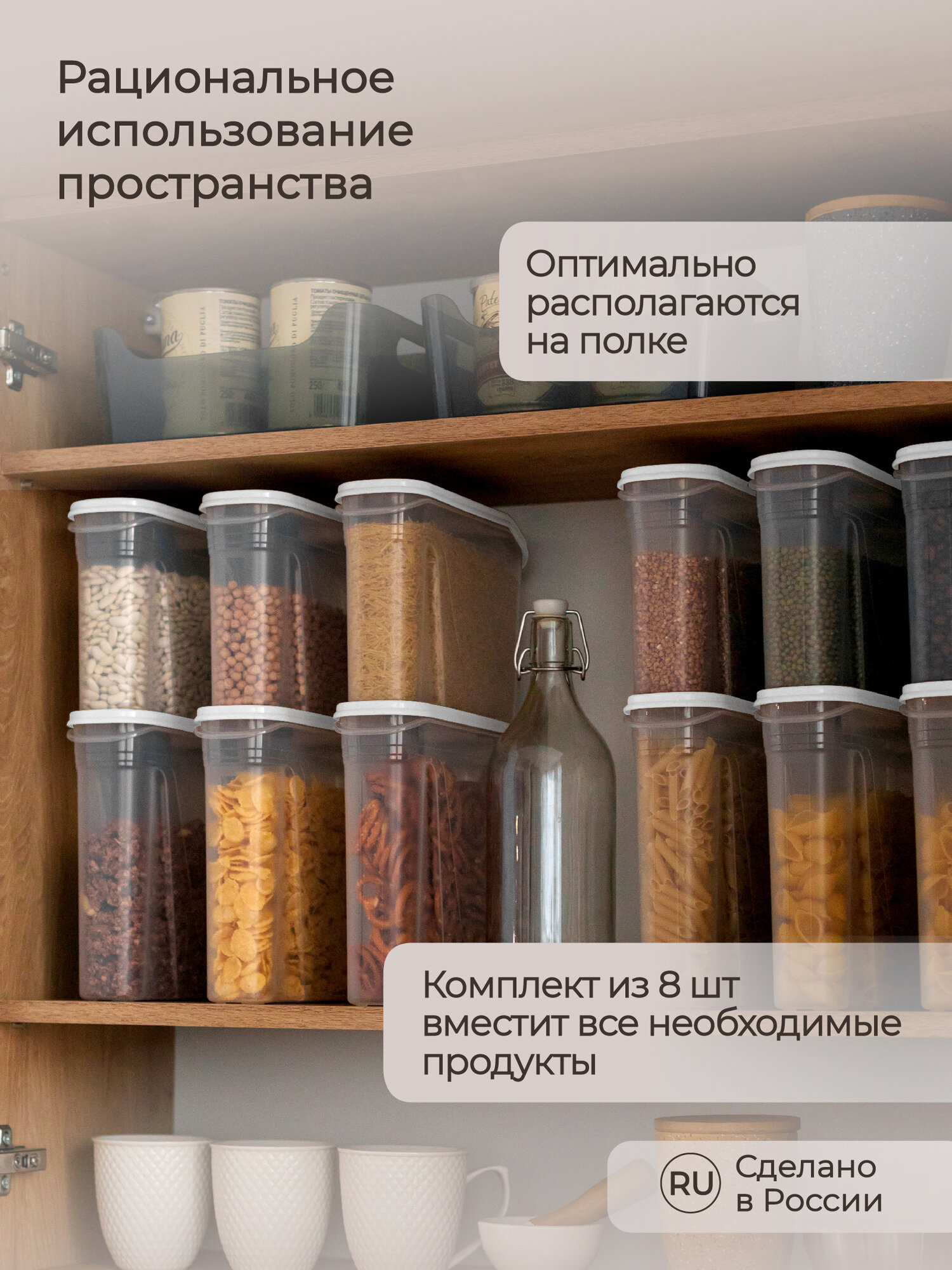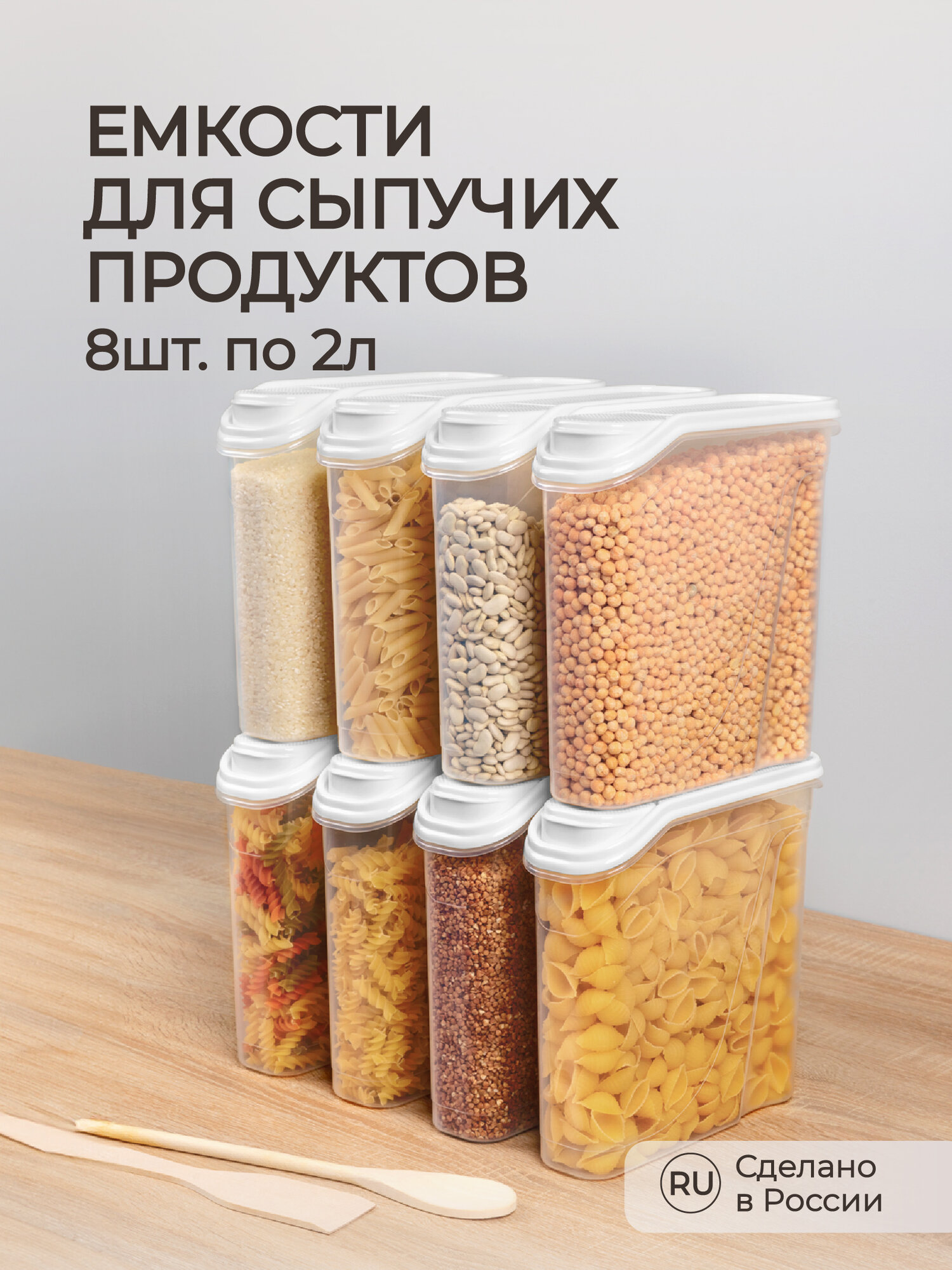 Комплект емкостей для сыпучих продуктов 8 шт по 2,0л (Белый) интересное: