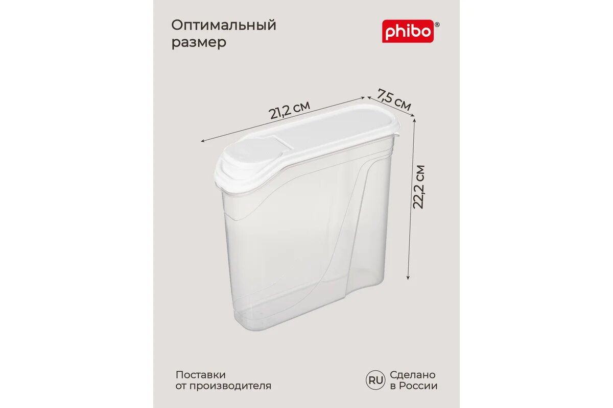 Комплект емкостей для сыпучих продуктов 2,0л, 8 шт, (Белый), Phibo
