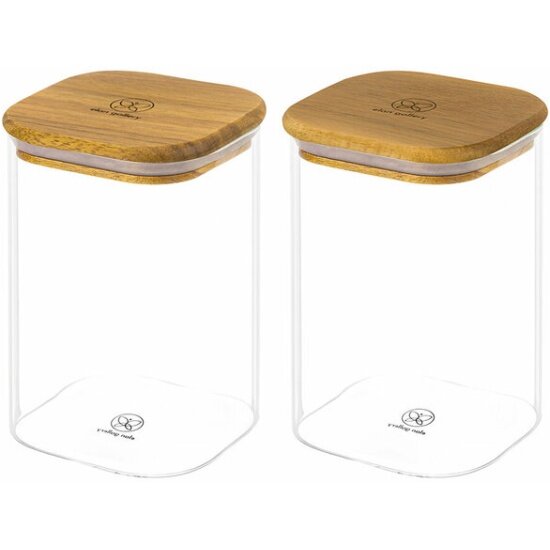 Купить Набор 2-х банок для хранения 1,1 л 10х10х15,5 см Elan Gallery Crystal glass, стеклянные с крышкой из акации с силиконовой прокладкой