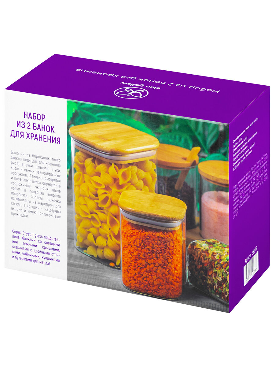 Набор 2-х банок для хранения 1,1 л 10х10х15,5 см Elan Gallery Crystal glass, стеклянные с крышкой из акации с силиконовой прокладкой интересное: