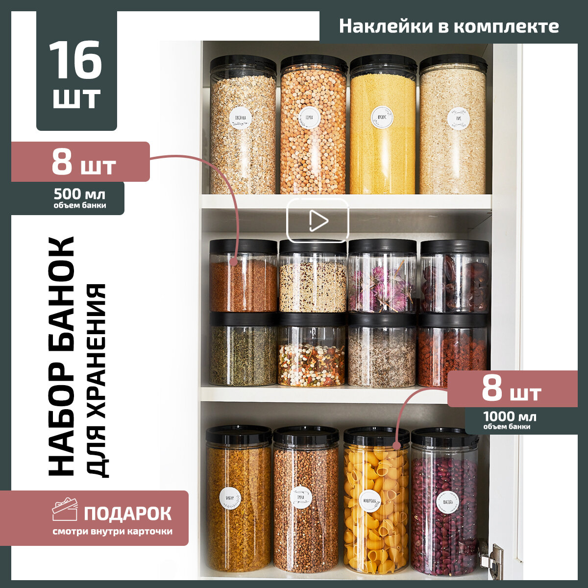 Банки для хранения сыпучих продуктов 8 шт 1 л и 8 шт 500 мл интересное: