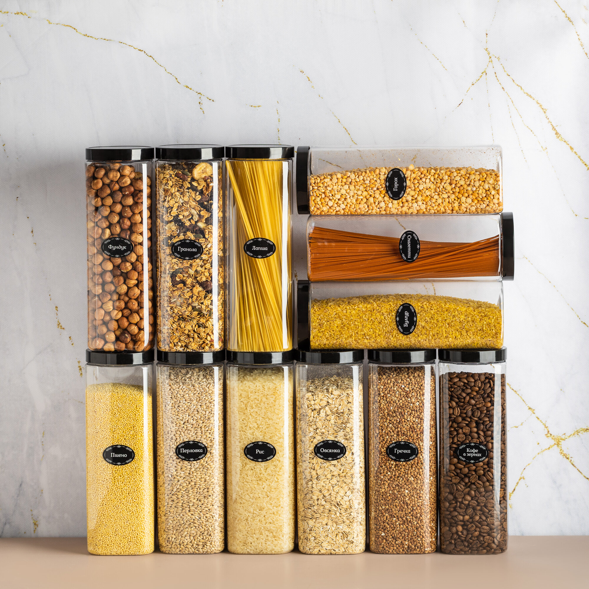 Набор банок для круп и сыпучих продуктов контейнеры 14 шт квадратной формы