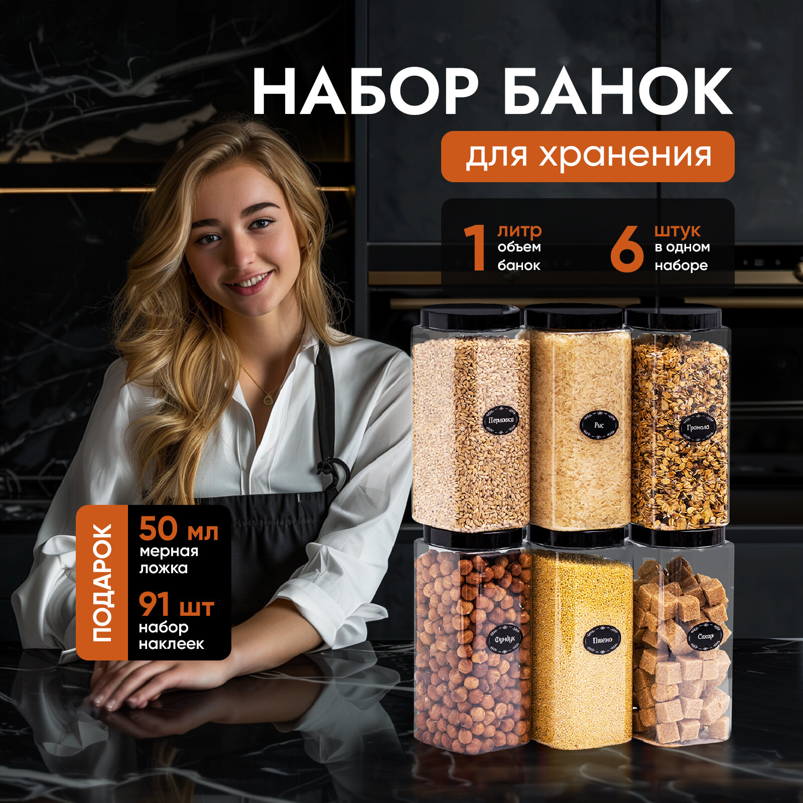 Банки для круп и сыпучих продуктов контейнеры 1,5 л/6 шт