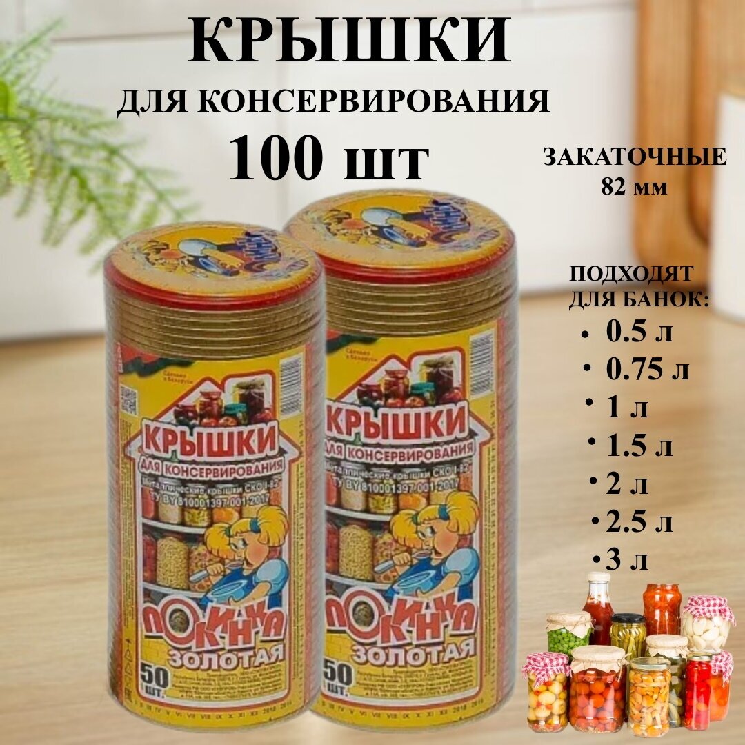 Крышки для консервирования 82 мм 100 шт, для банок, золотые для автоклава металлические интересное: