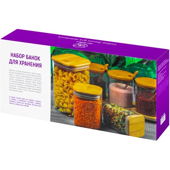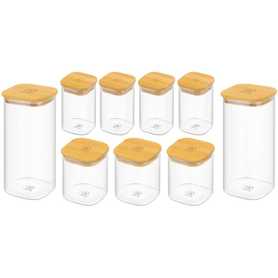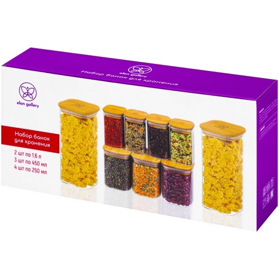 Набор Elan Gallery 9 банок для хранения "Crystal glass" с бамбуковыми крышками (360166 Elan) интересное: