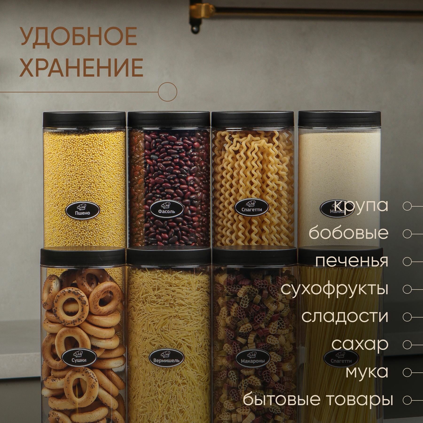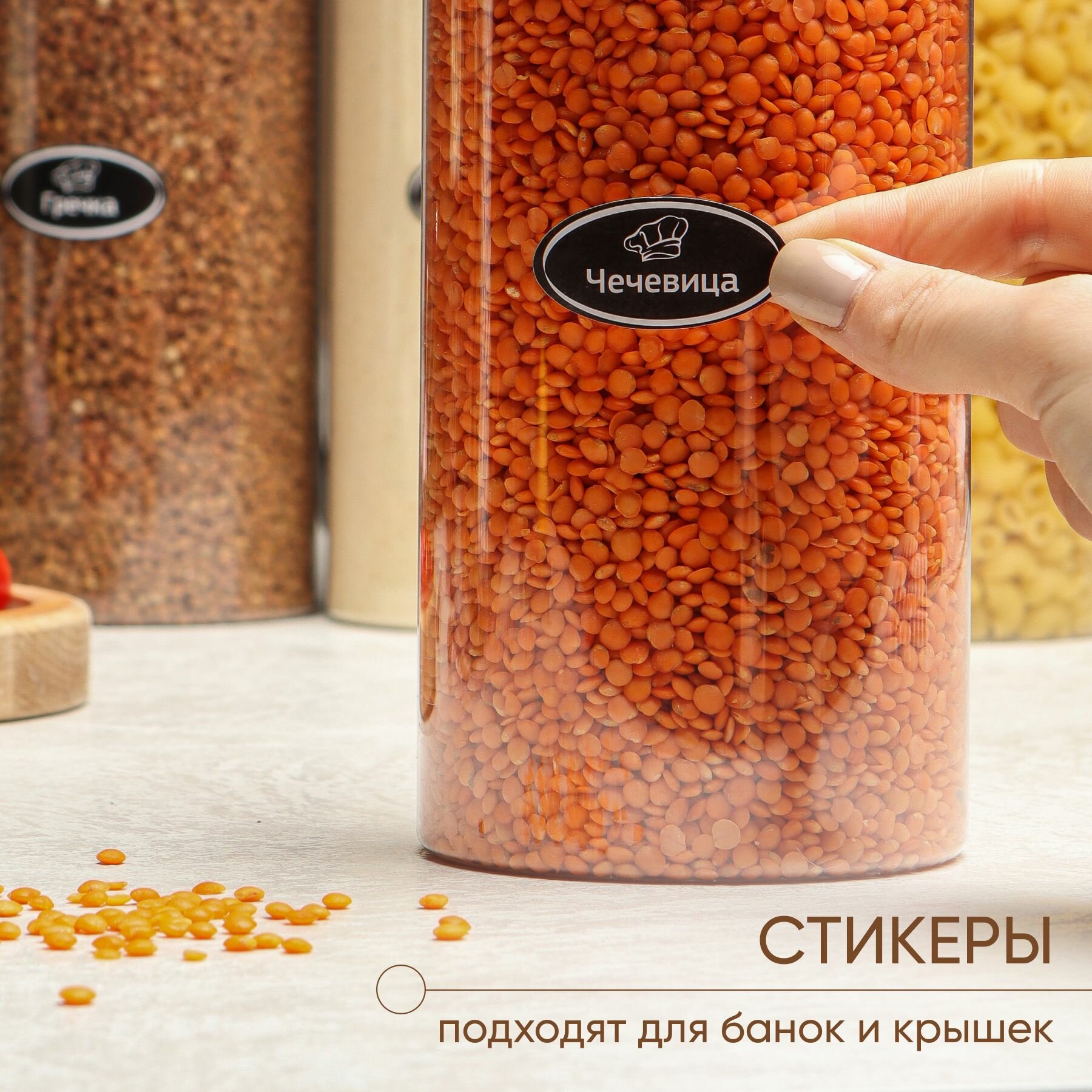 | Назначение | для спагетти / для сыпучих продуктов / для чайных пакетиков / для чая и кофе / универсальная |
