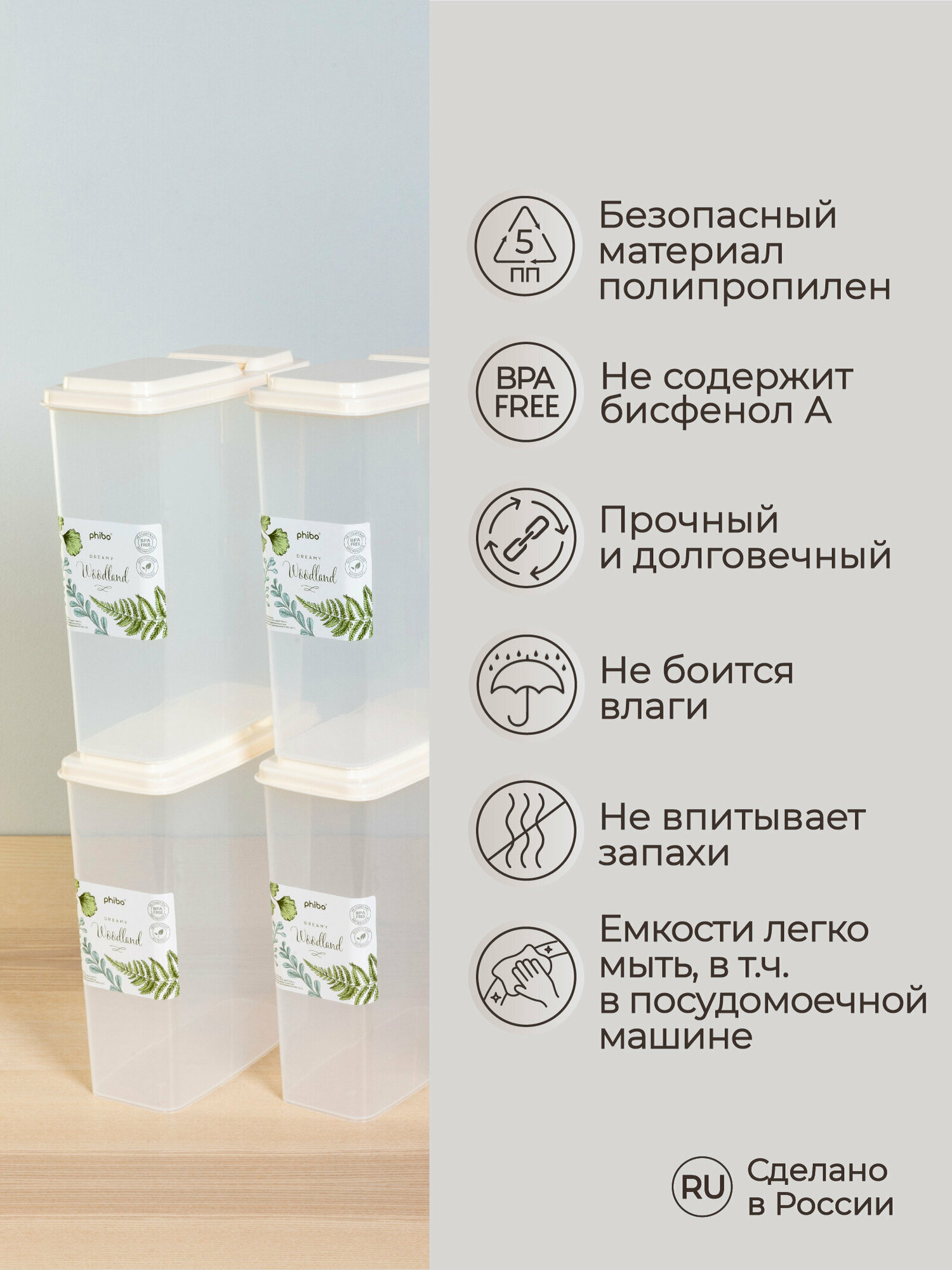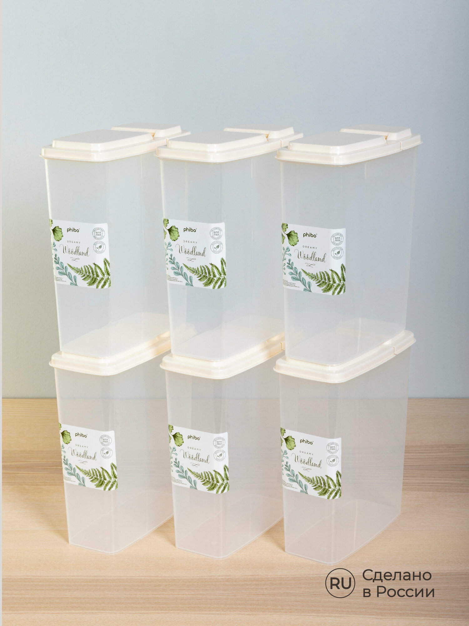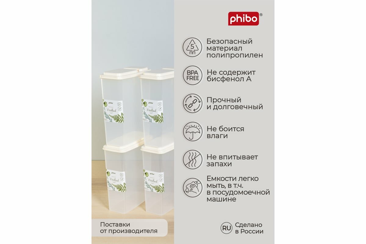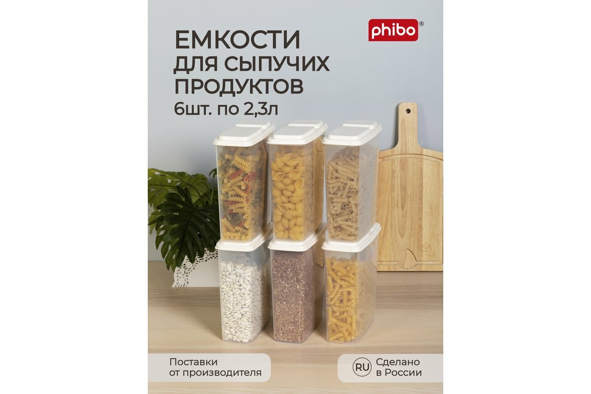 Phibo Комплект емкостей для сыпучих продуктов 2,3л, 6 шт (бежевый) 43521530722