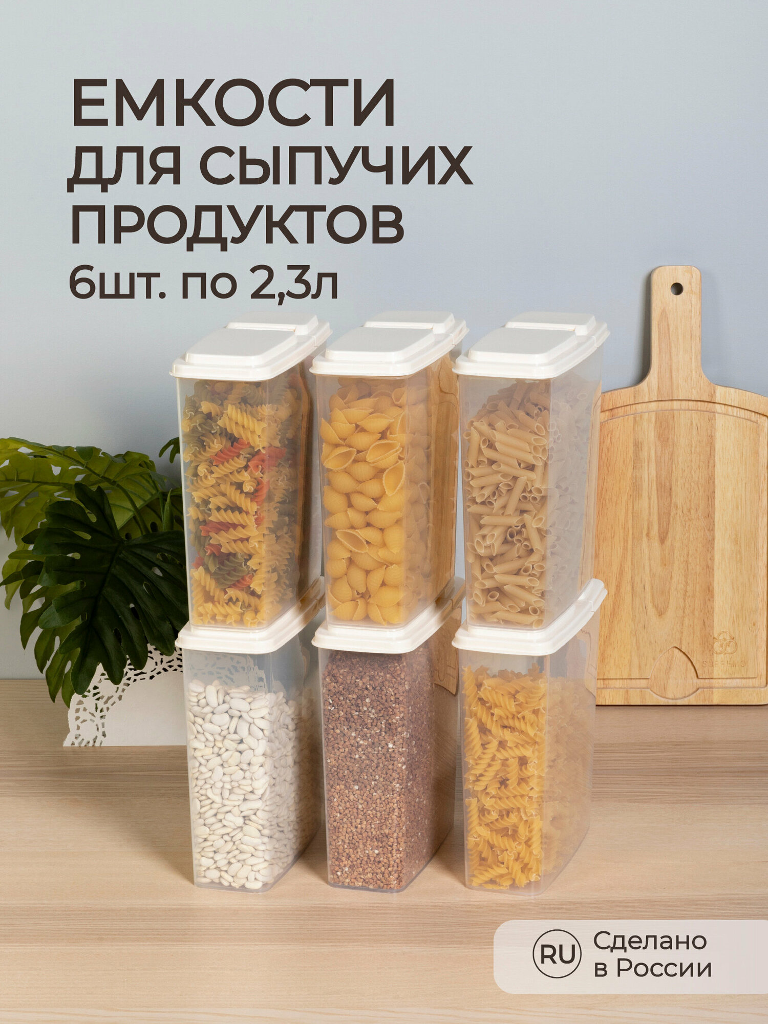 Комплект емкостей для сыпучих продуктов 2,3л, 6 шт (Белый)