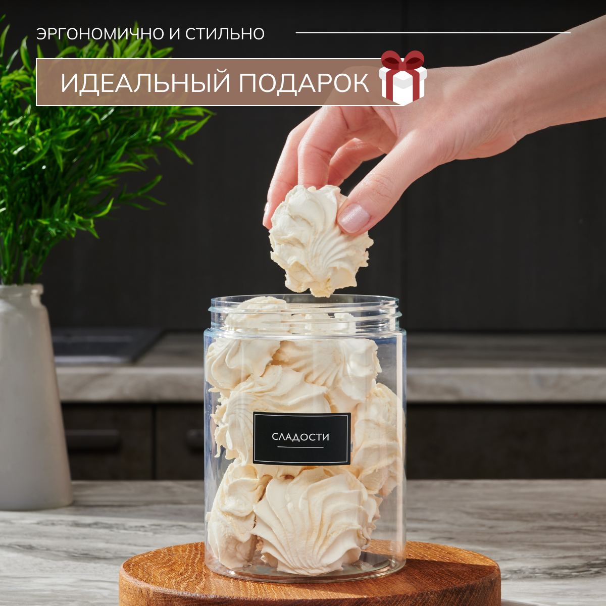 | Дополнительная информация | Набор контейнеров для хранения сыпучих продуктов. Баночки позволят убрать визуальный шум , а также вы всегда будете знать какой продукт в каком количестве. |