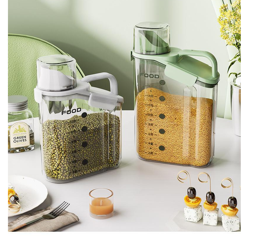 Емкость для хранения крупы MyPads, муки, пищевых сыпучих продуктов с ручкой и мерной шкалой, прозрачный органайзер на 2000мл для хранения, белый интересное: