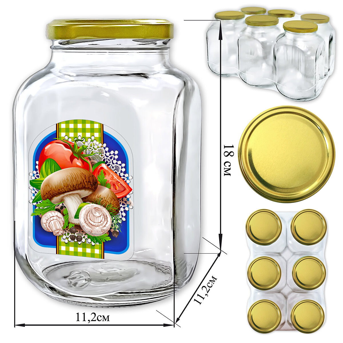 | Комплектация | Банка + крышка + наклейка - 6 шт |