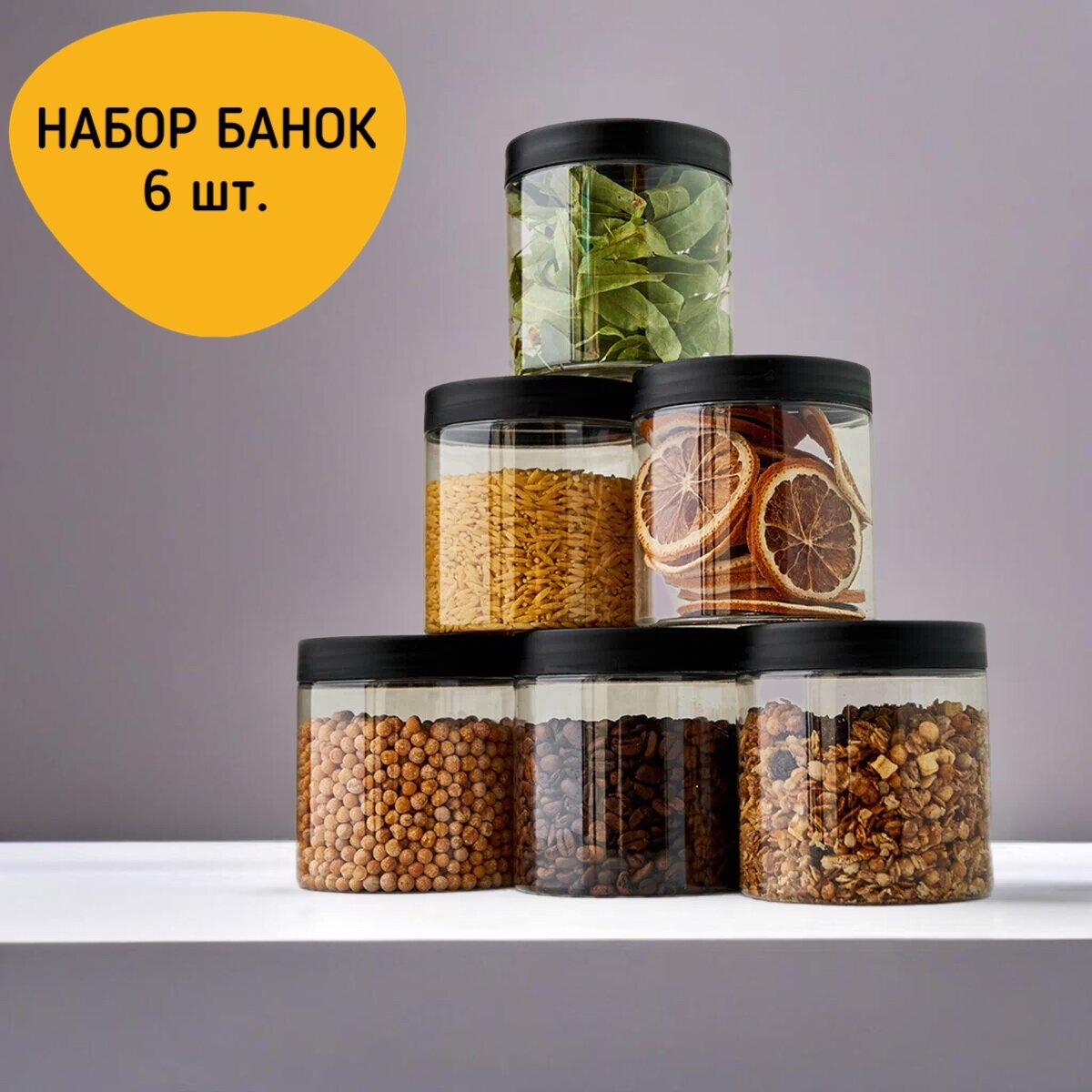 | Комплектация | Банки для хранения сыпучих продуктов с крышками черного цвета 6 штук, |