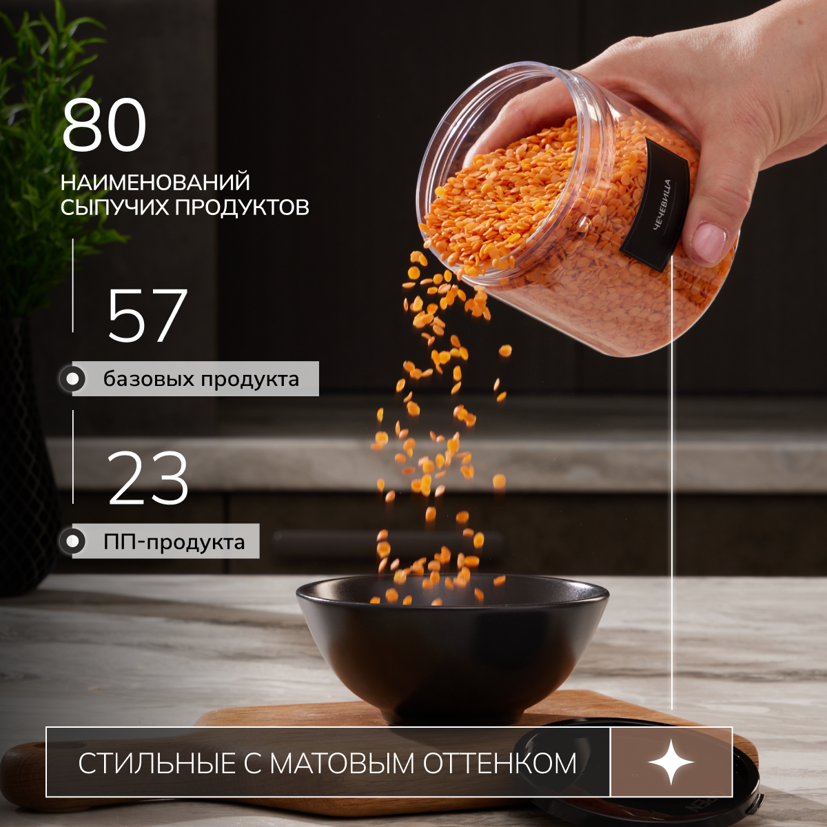 Банки для хранения сыпучих продуктов Палитра Уюта, 24 шт, емкость для круп и специй и спагетти