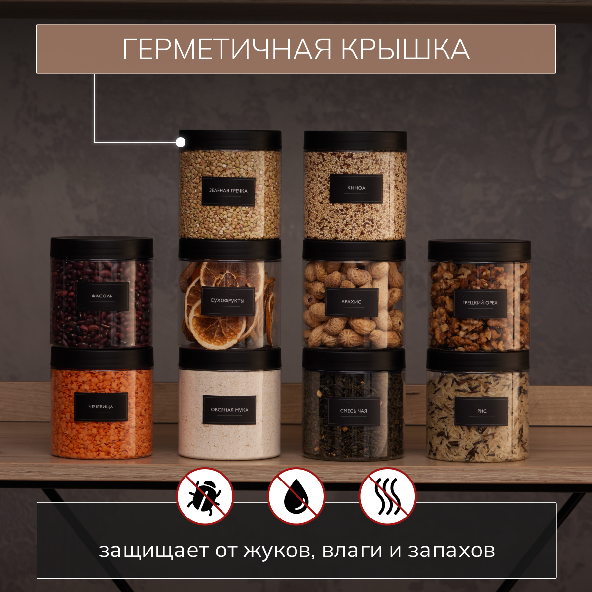 Банки для хранения сыпучих продуктов Палитра Уюта, 14 шт, емкость для круп
