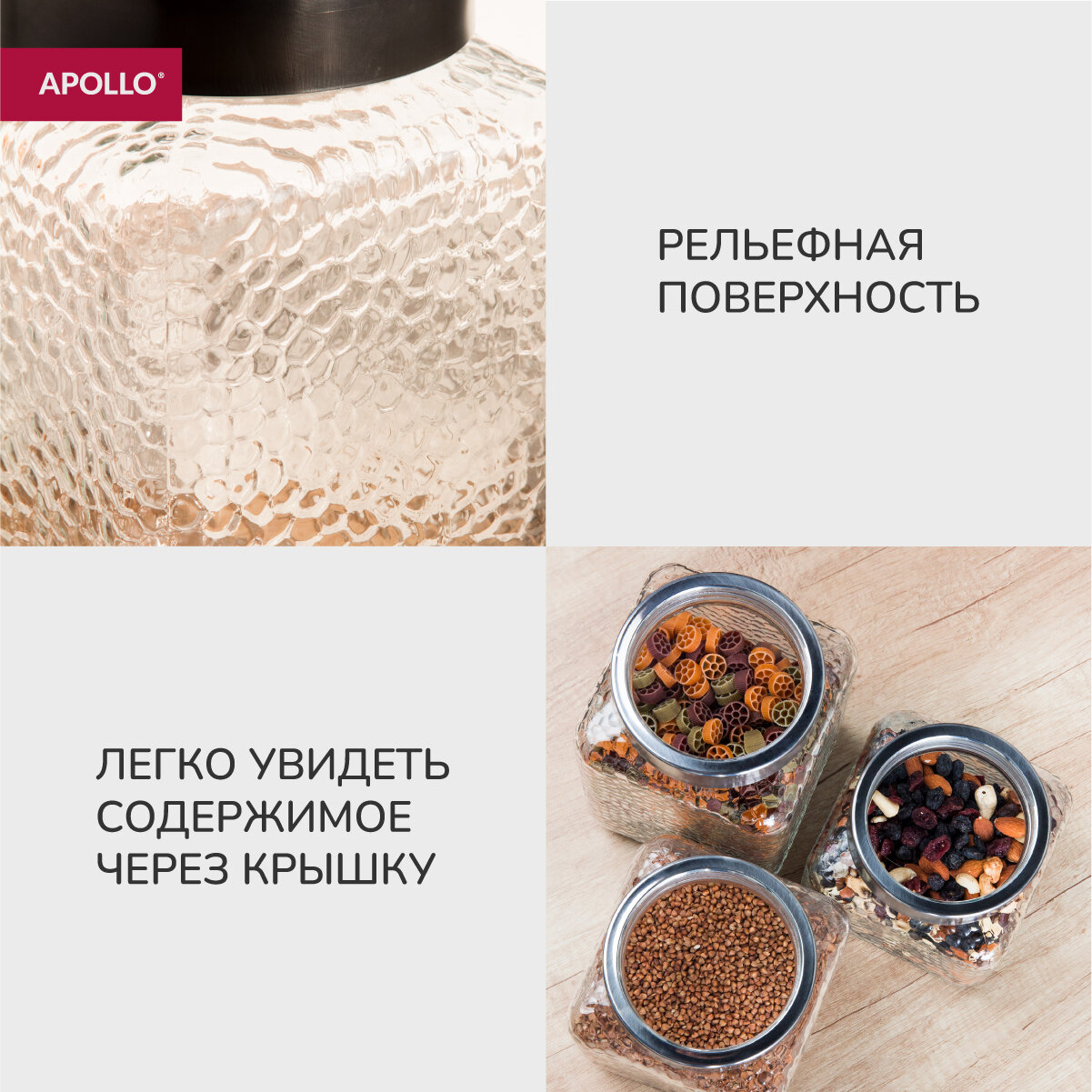 Банка с крышкой для хранения сыпучих продуктов APOLLO "Nordic Cube" 1,25 л интересное: