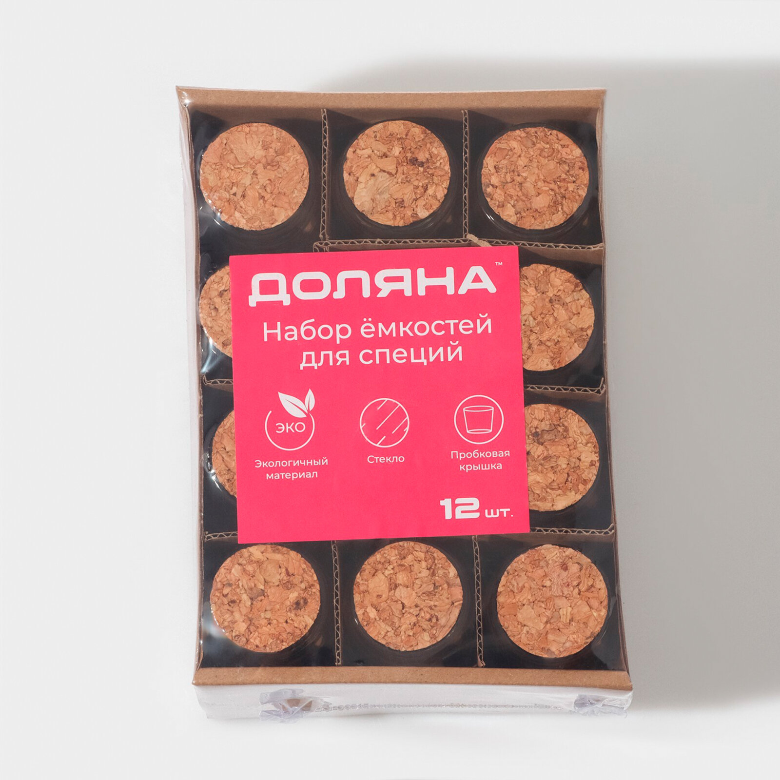 Набор стеклянных баночек для сыпучих продуктов с пробковой крышкой Доляна «Парфе. Колба», 80 мл, 3,7×10 см, 12 шт интересное: