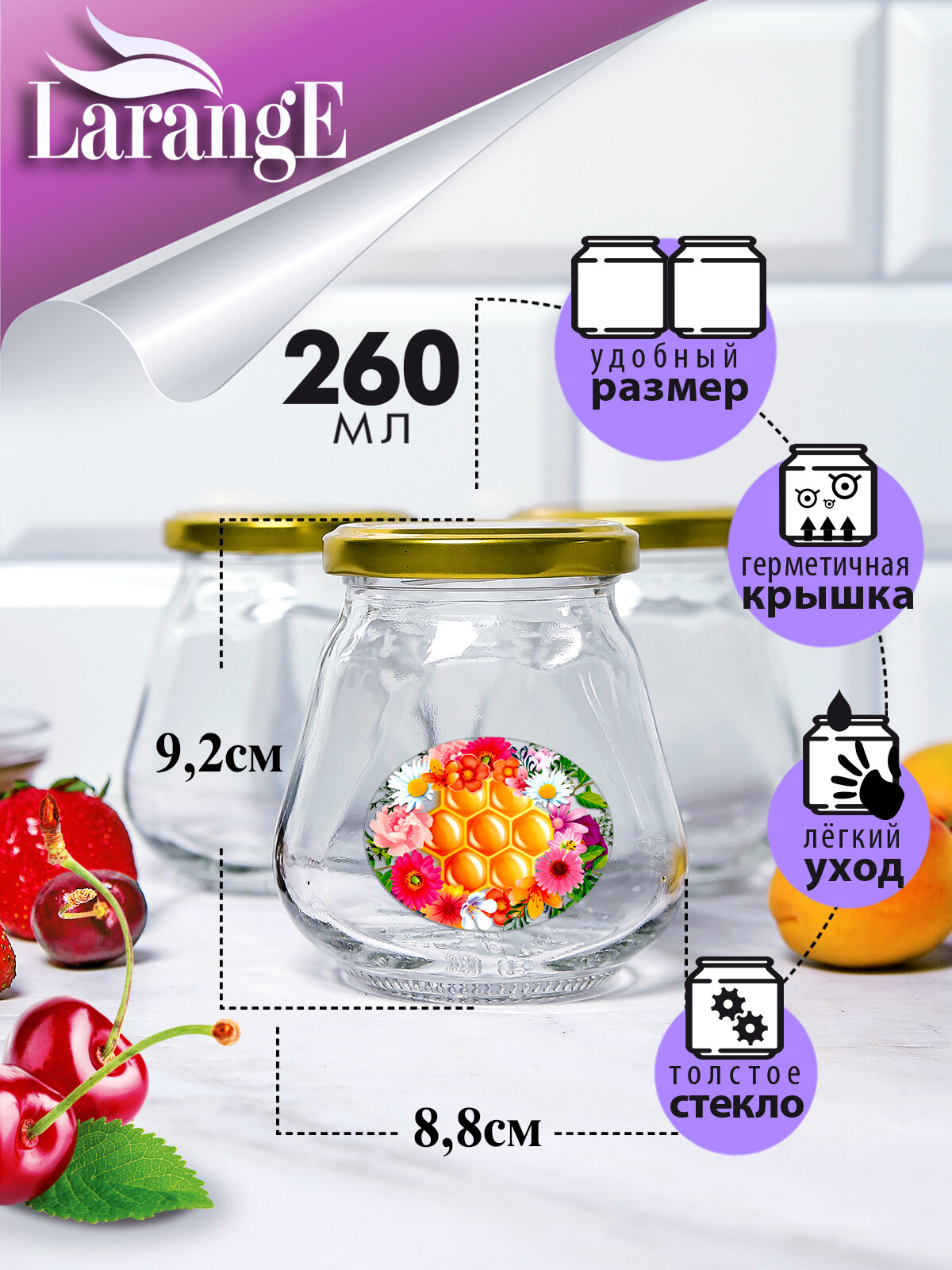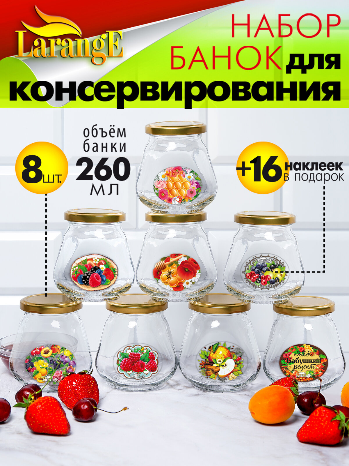 Банки для консервирования винтовые с крышками и наклейками 8 шт по 260мл