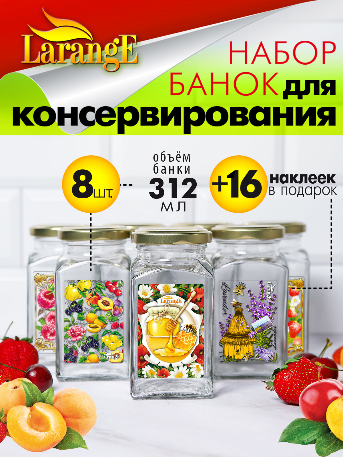 Купить Банки для консервирования винтовые с крышками и наклейками 8 шт по 312 мл
