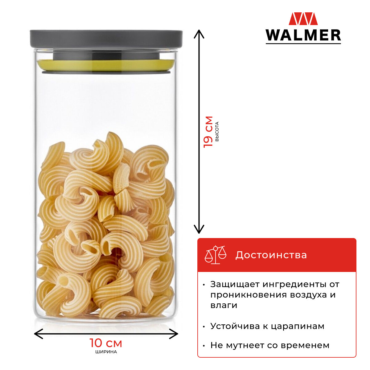 Банка для продуктов walmer ergo 1400мл штабелируемая стекло,пластик