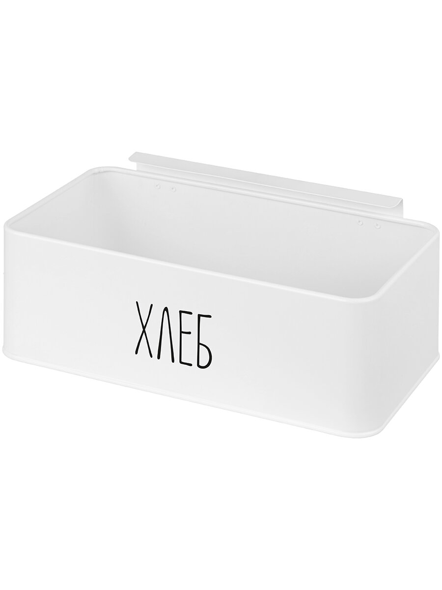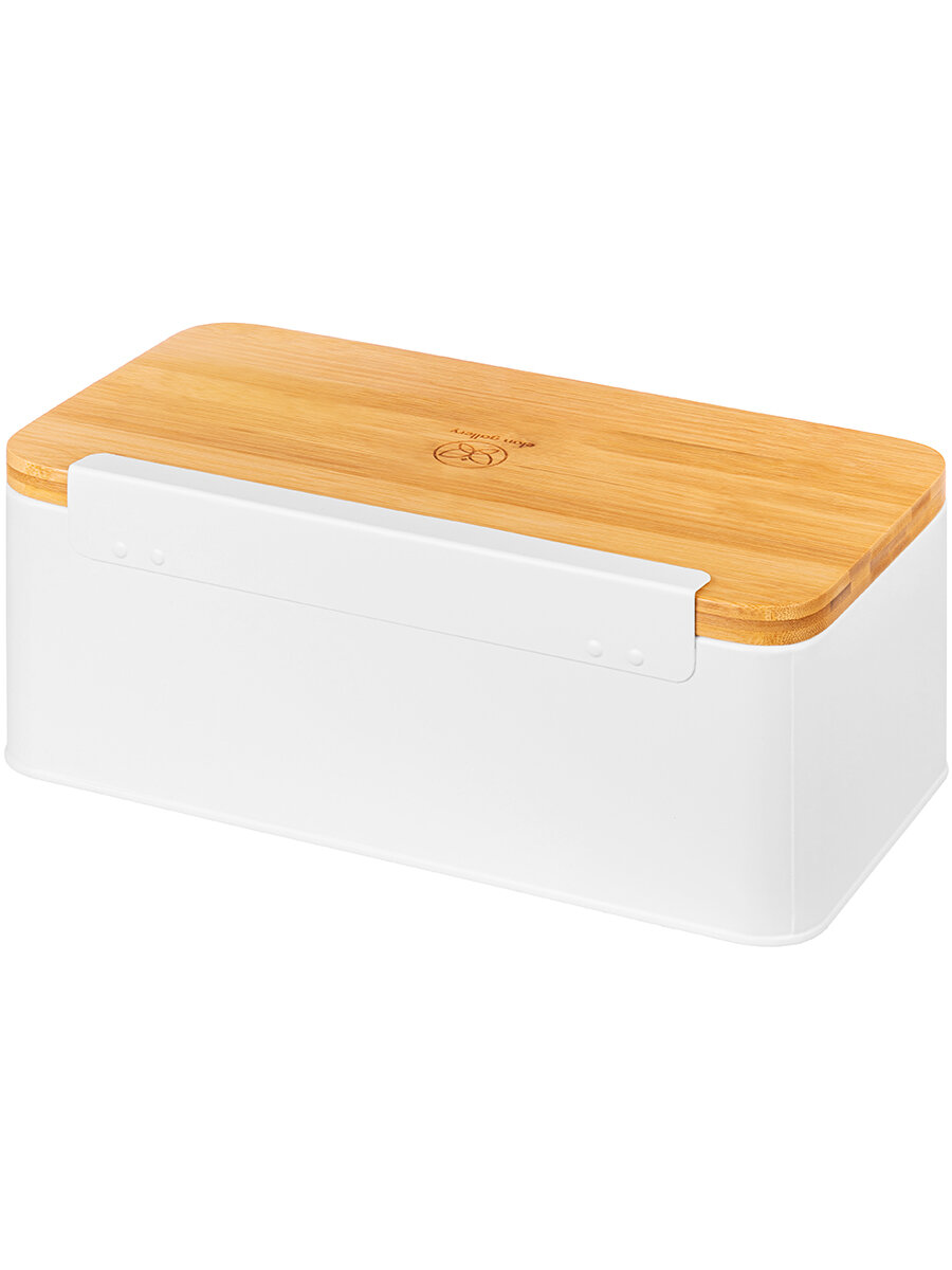 Хлебница 33х18х13 см Elan Gallery Белая, металлическая, с бамбуковой крышкой-доской, с надписью