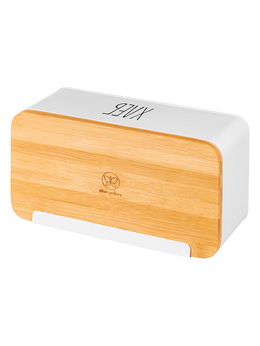 Купить Хлебница 33х18х13 см Elan Gallery Белая, с бамбуковой крышкой-доской, с надписью