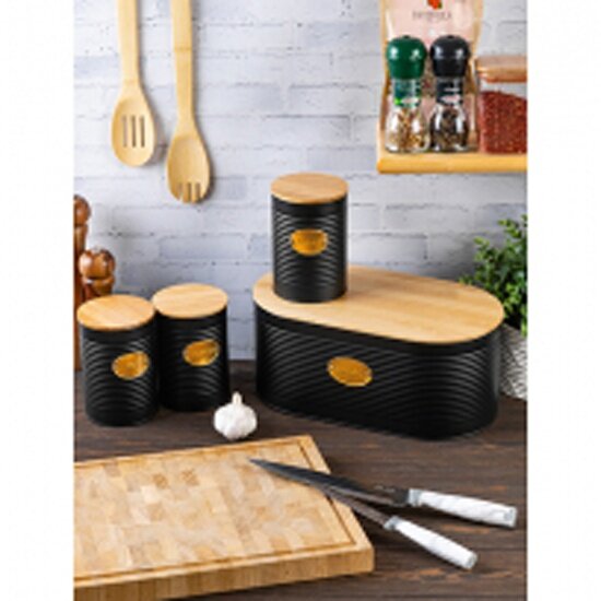 Набор Хлебница с емкостями для хранения Kamille KM 1118 бамбук, нержавеющая сталь (1118 / черный)