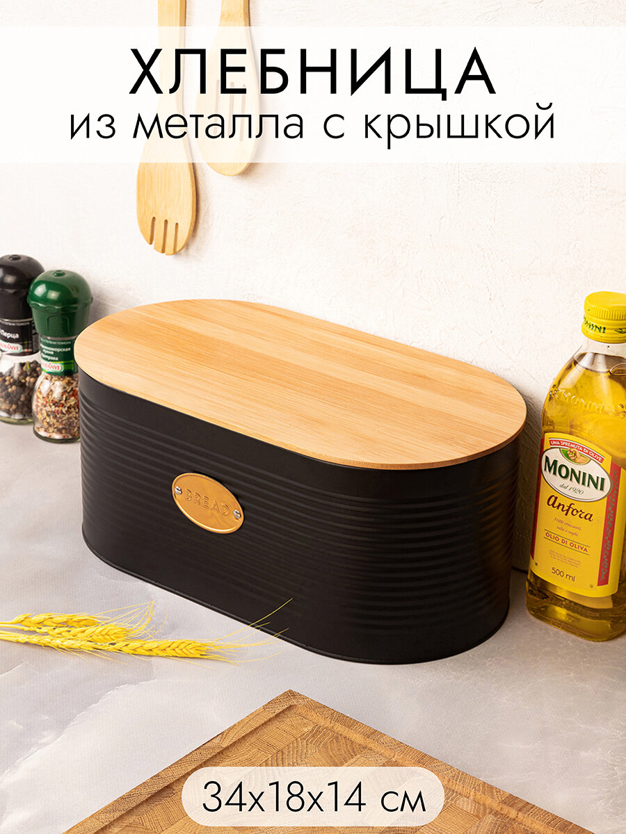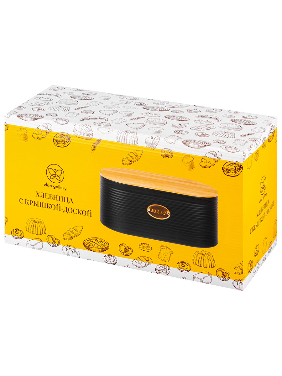 Хлебница 34*18*14 см Elan Gallery "Черная", металлическая, с бамбуковой крышкой