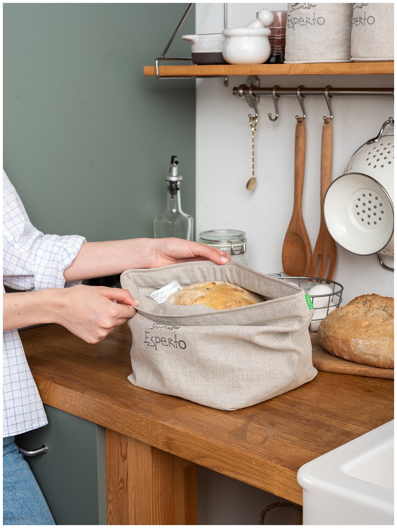 Льняной Хлебный клатч Esperto Premium L, хлебница, белорусский лён, контейнер для еды, подарок, цвет бежевый, (9,7 л.)