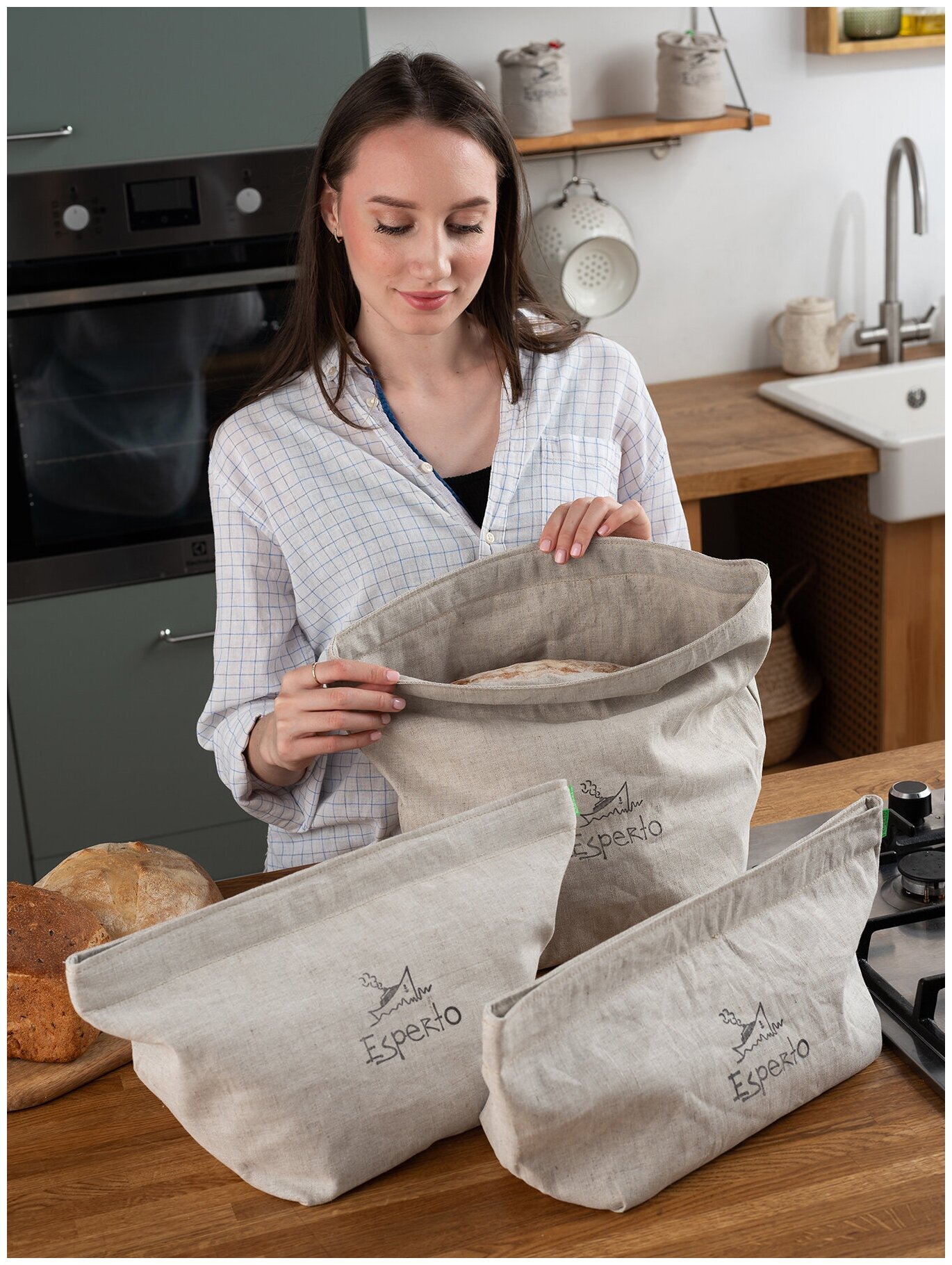 Подарочный набор хлебных клатчей Esperto Premium, 3 шт. - M, ML, L, белорусский лён, хлебницы, подарок, цвет бежевый