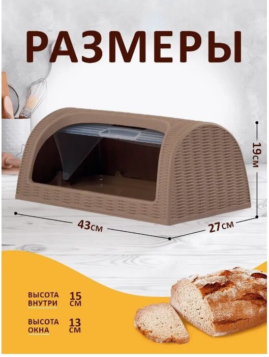 Хлебница пластиковая "Elegance" 43Х27Х19 см. Эльфпласт коричневый