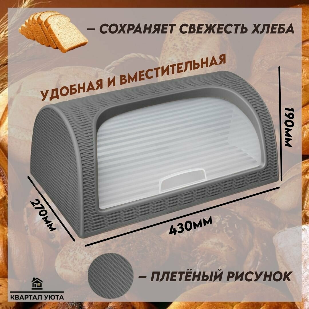 Хлебница пластиковая с крышкой "Elegance" 43Х27Х19 см. Эльфпласт серо - коричневый, корзинка для хлеба, сухарница
