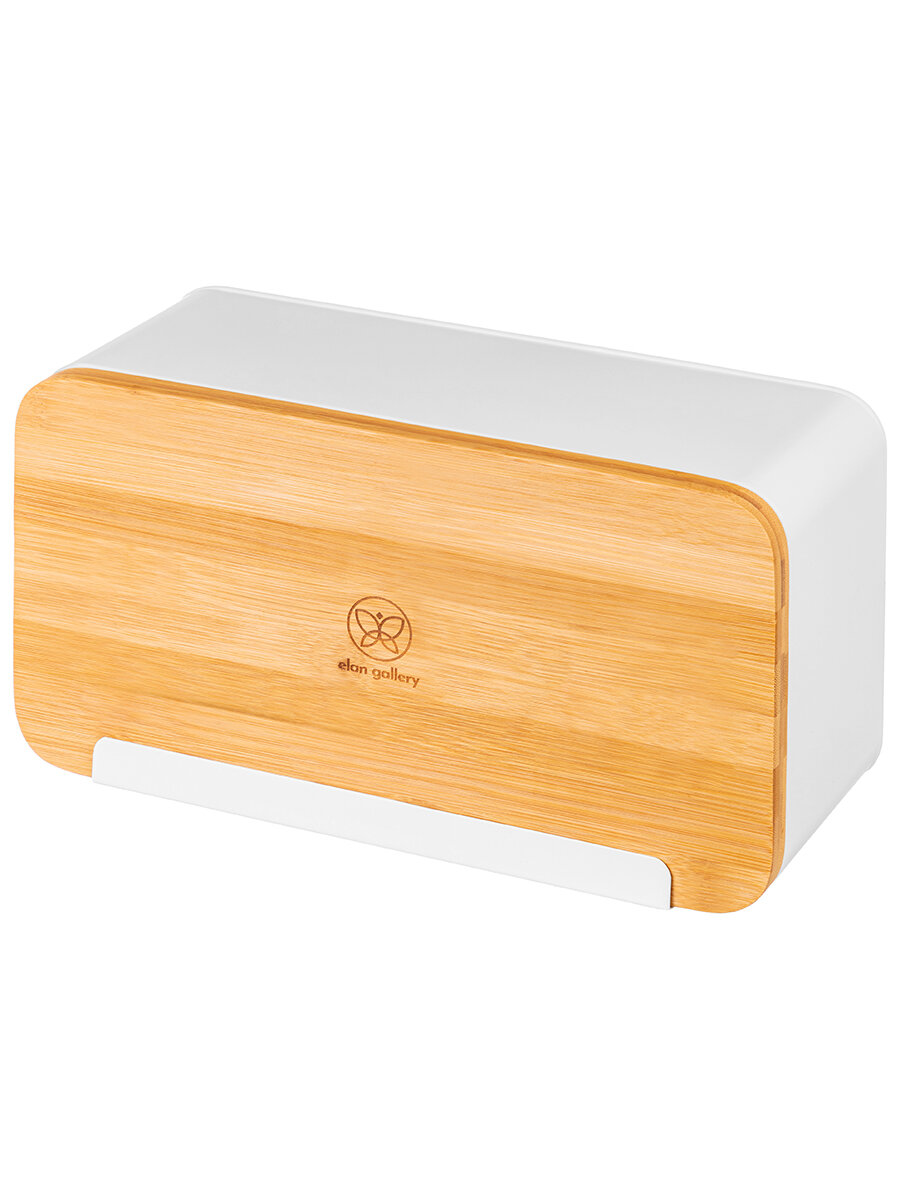 Контейнер для хранения / хлебница / короб металлический 33х13х18 см "Белая" с бамбуковой крышкой-доской интересное: