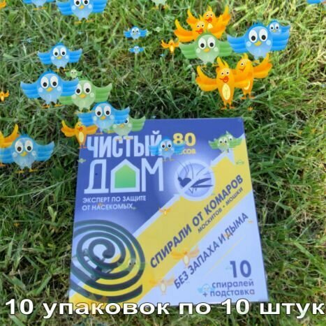 Спирали от комаров бездымные, 10 штук в упаковке, Чистый дом