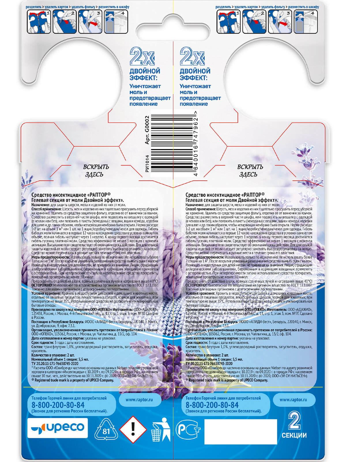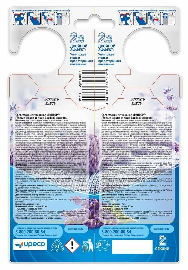 Гелевая секция от моли Двойной эффект, Раптор - средство от моли, 2 шт. интересное: